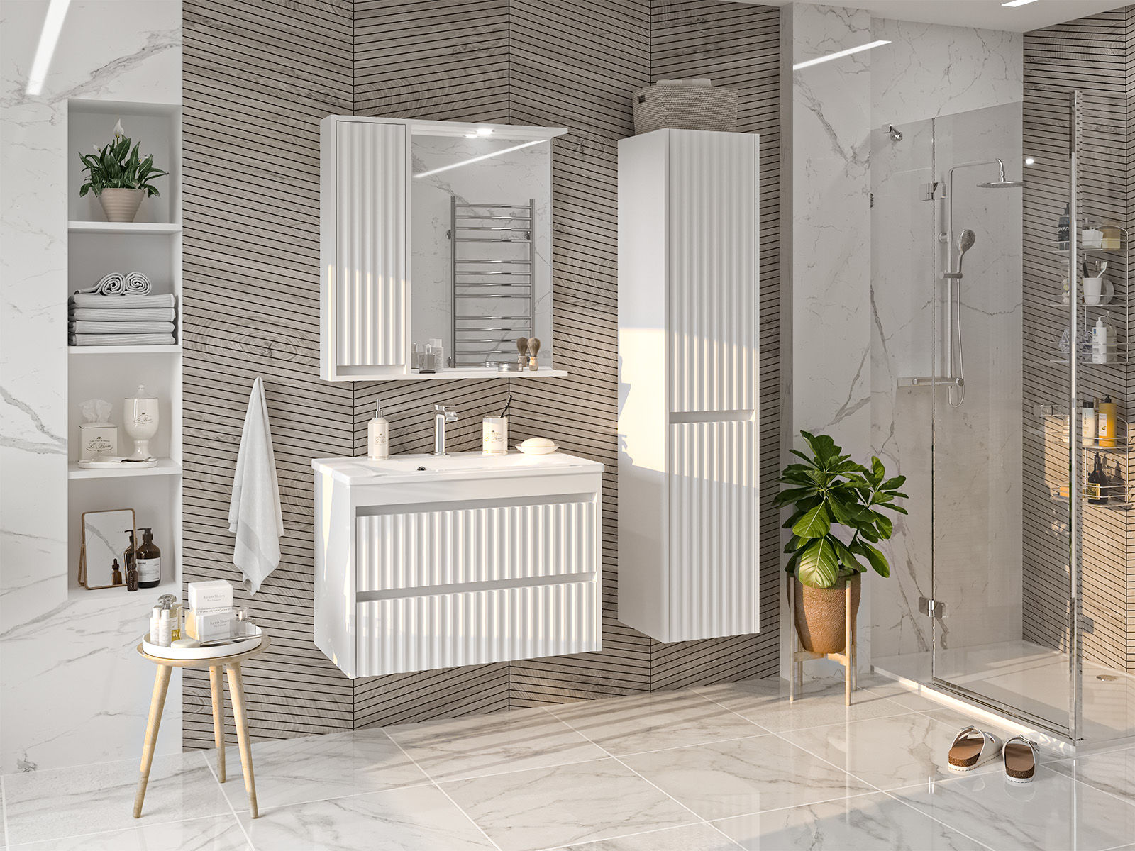 Мебель в ванную из коллекции Balaton станет отличным решением для поклонников современного стиля. Изделия отличаются необычным дизайном, в котором сочетаются различные стилистические решения и оригинальные декоры. Фасады всех изделий имеют рельефную волнистую поверхность.