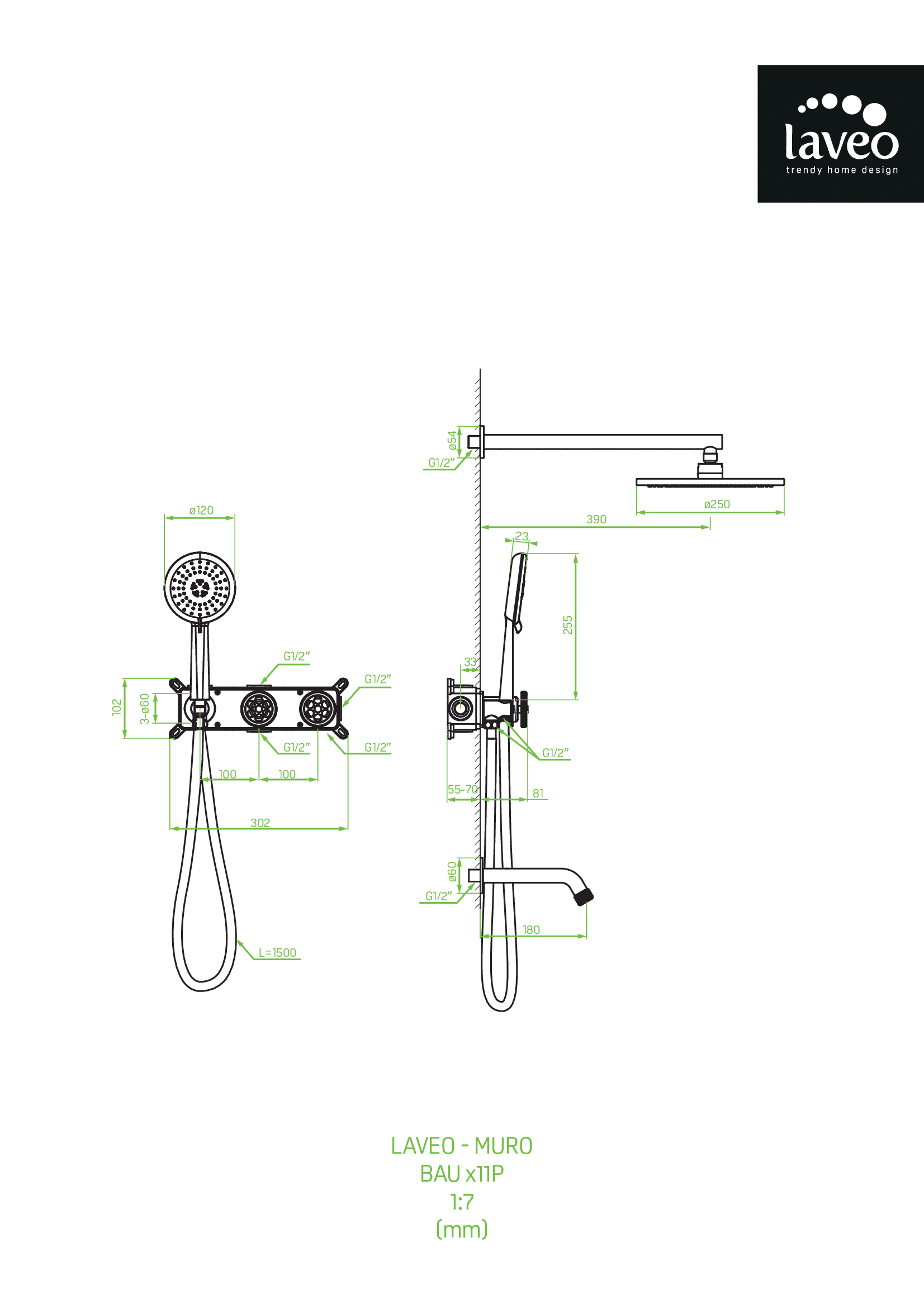 Душевая система скрытого монтажа Laveo Muro BAU_711P с изливом черный