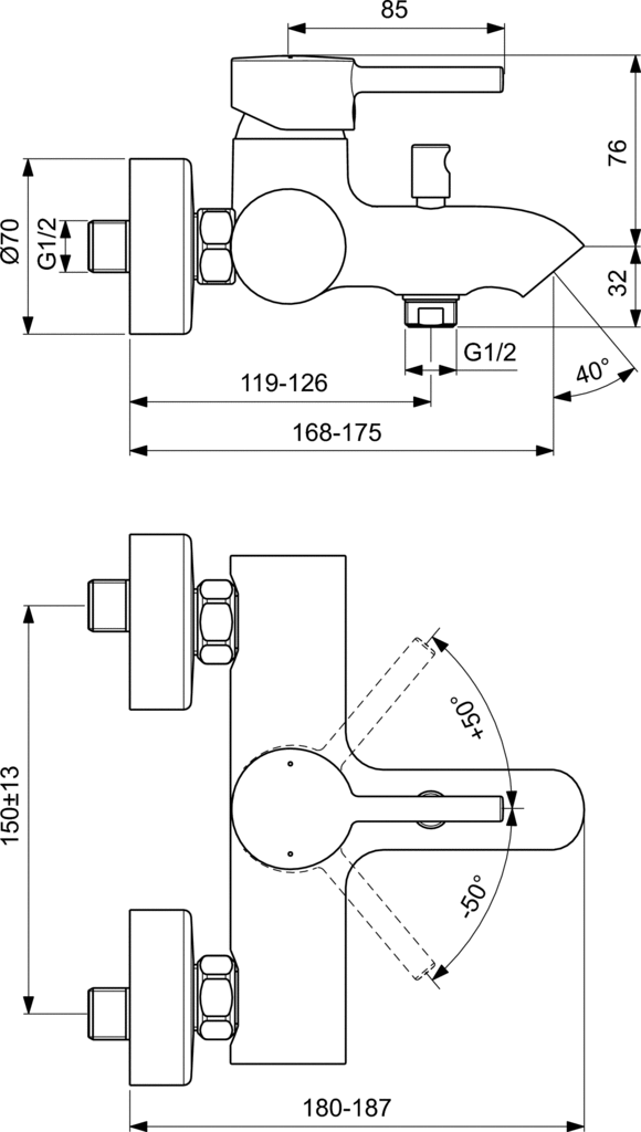 Смеситель для ванны Ideal Standard Ceraline BC199XG черный матовый