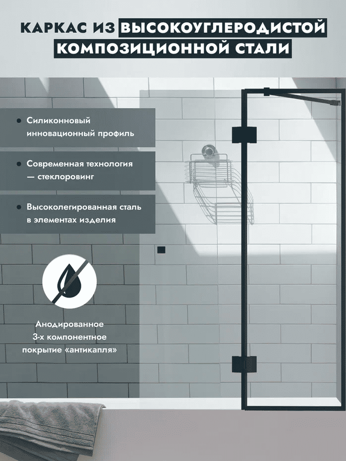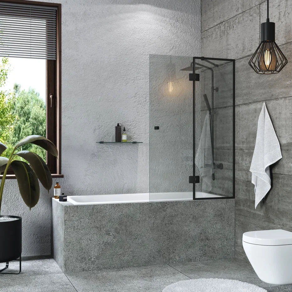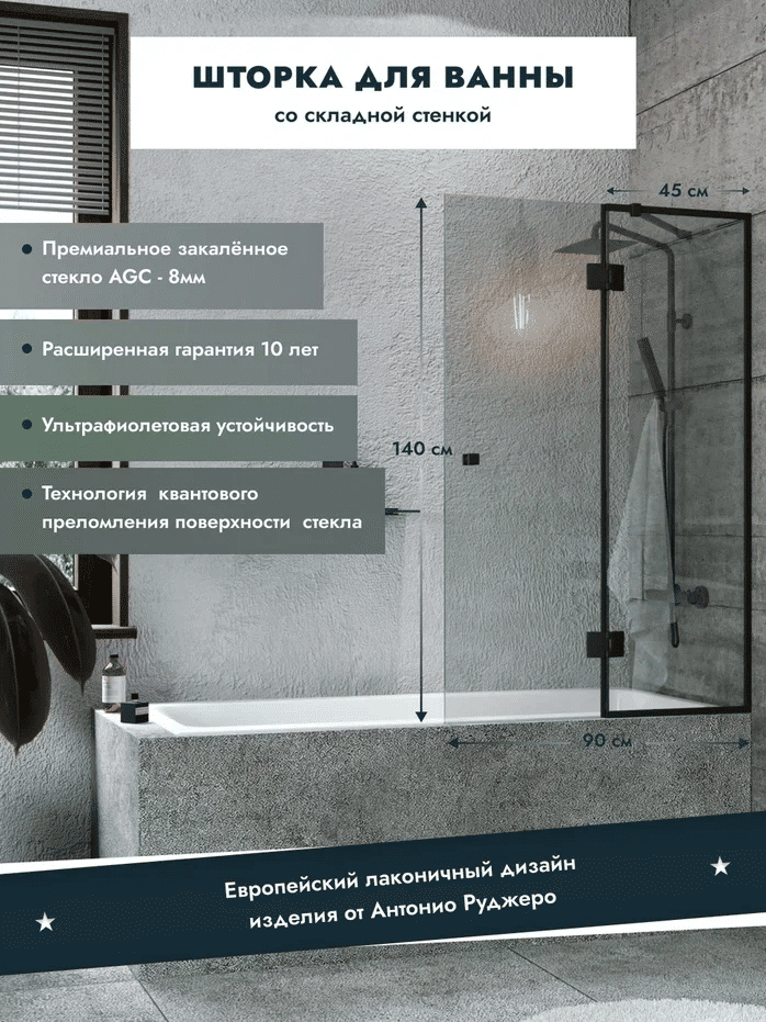 Шторка на ванну Benetto стладывается одна стенка 1400×900 (450/450) / BEN-402_BL_C черный + прозрачное стекло