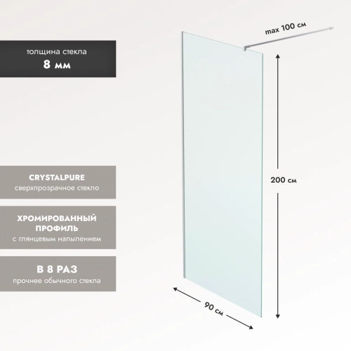 Душевая перегородка Benetto Walk In 2000х900 SILVER
