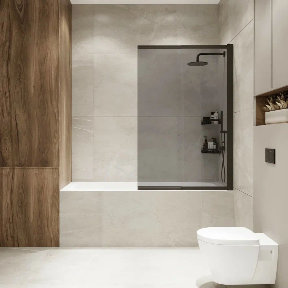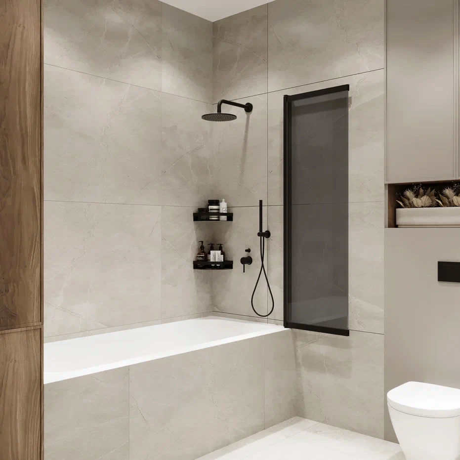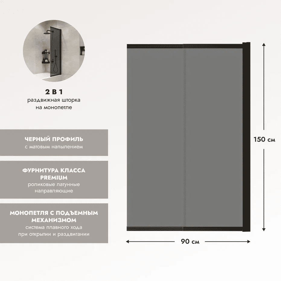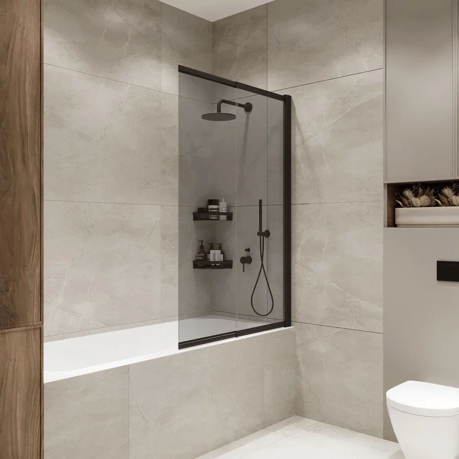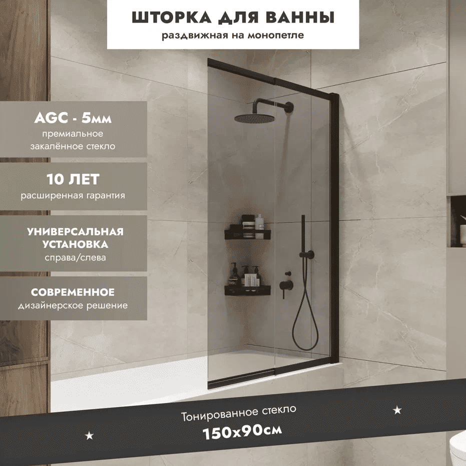 Шторка на ванну Benetto Slide Open 1500×900 / BEN_801_BL_T черный + тонированое стекло
