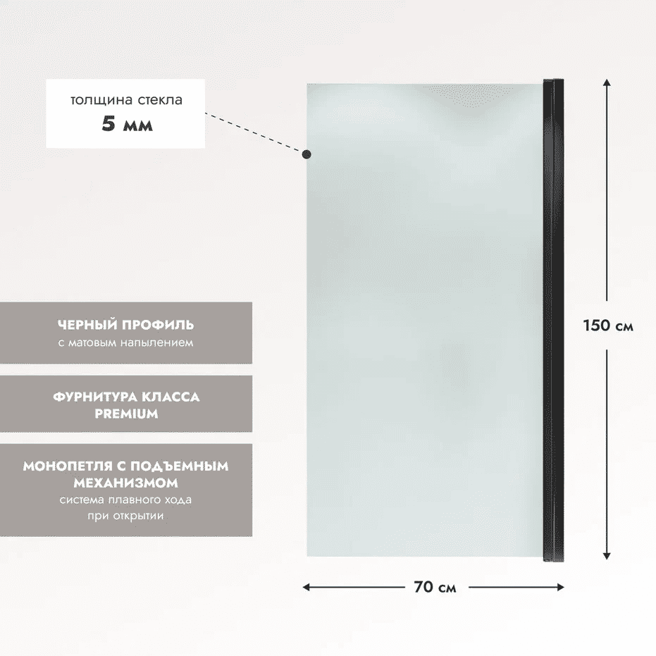 Шторка на ванну Benetto Wide Open 1500×700 / BEN_802_BL_C черный + прозрачное стекло