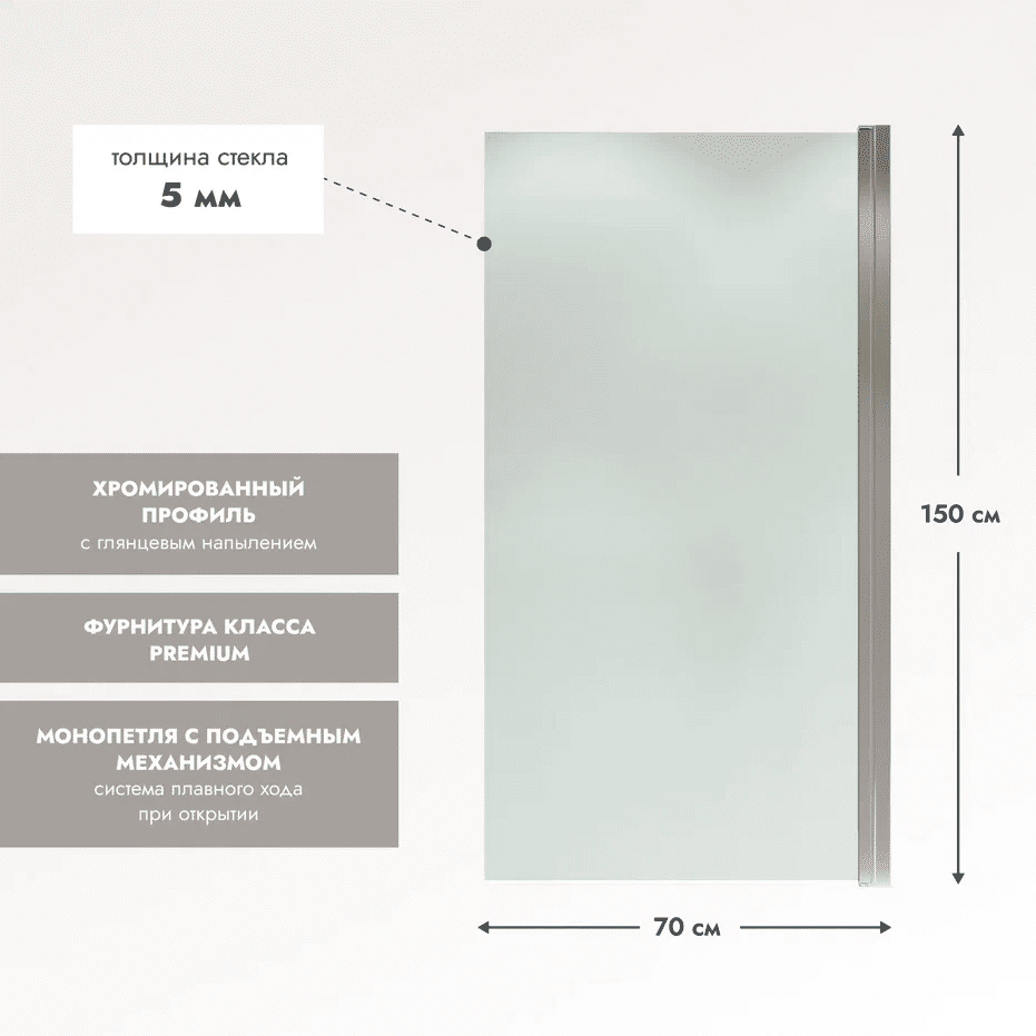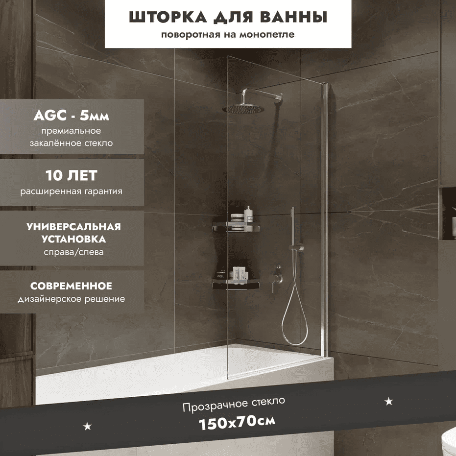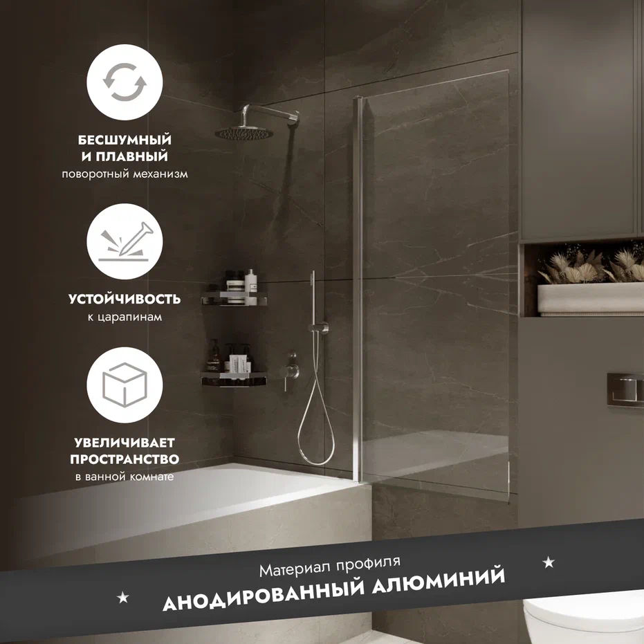 Шторка на ванну Benetto Wide Open 1500×700 / BEN_802_SL_C хром + прозрачное стекло