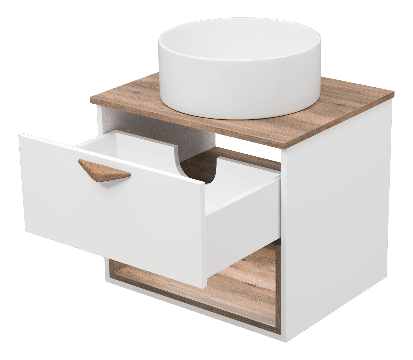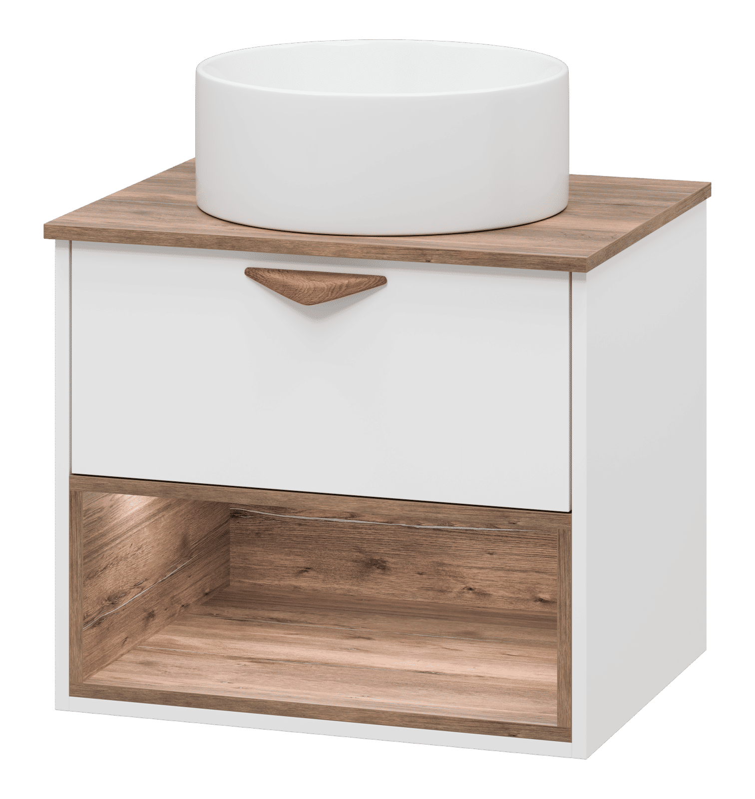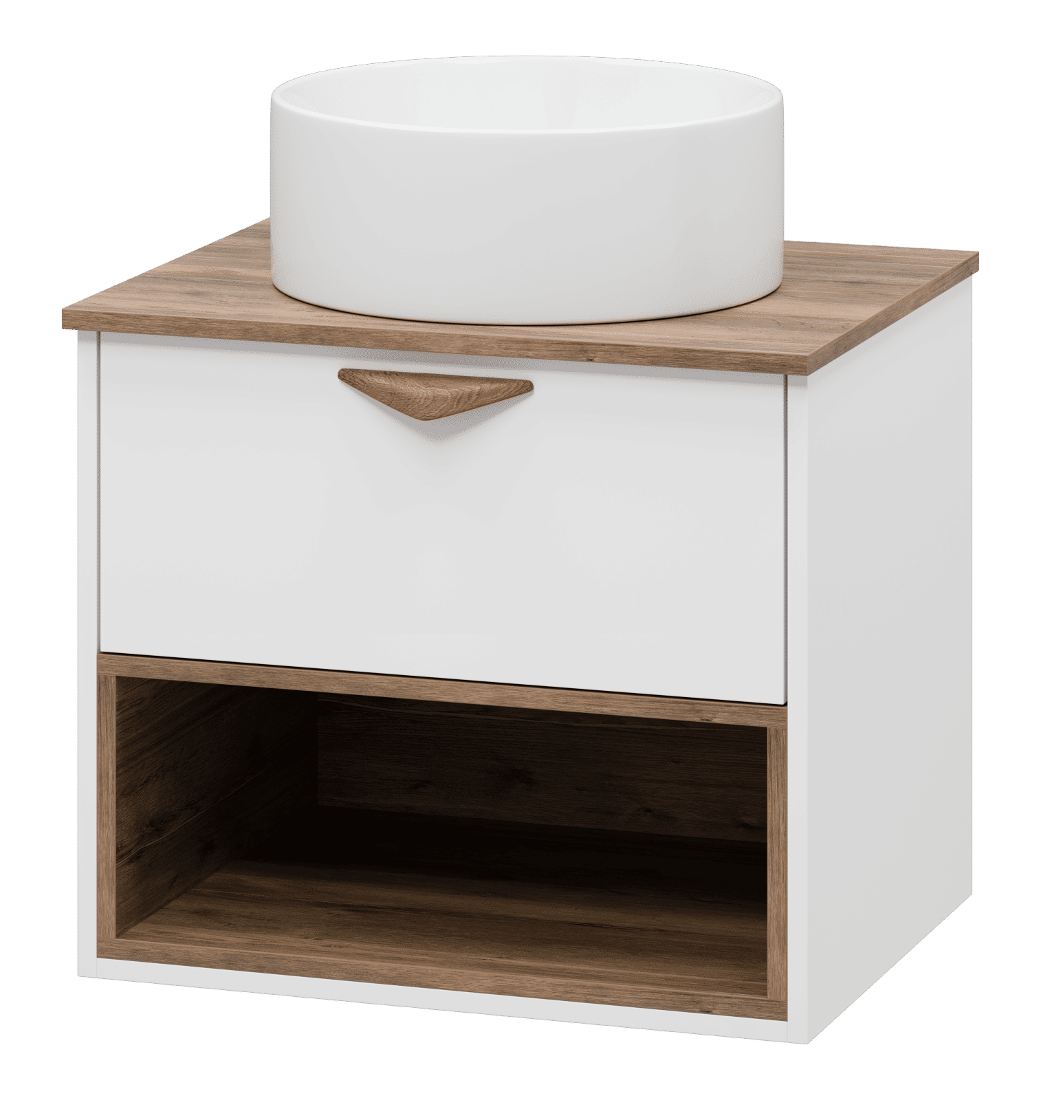 Тумба под раковину Brevita Bergen 60 подвесная с подсветкой 1 ящ. / BER-07060-19-01-1Я белый/темное дерево