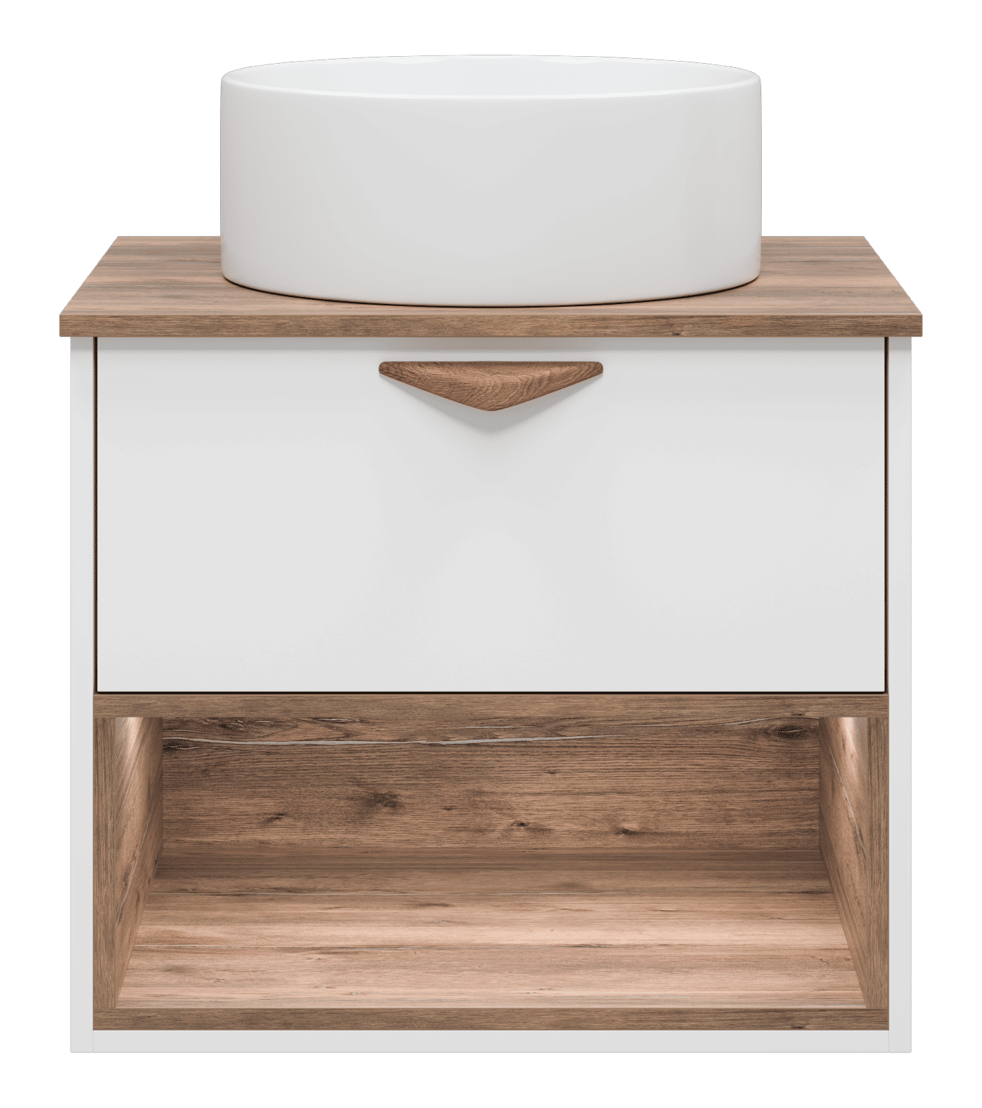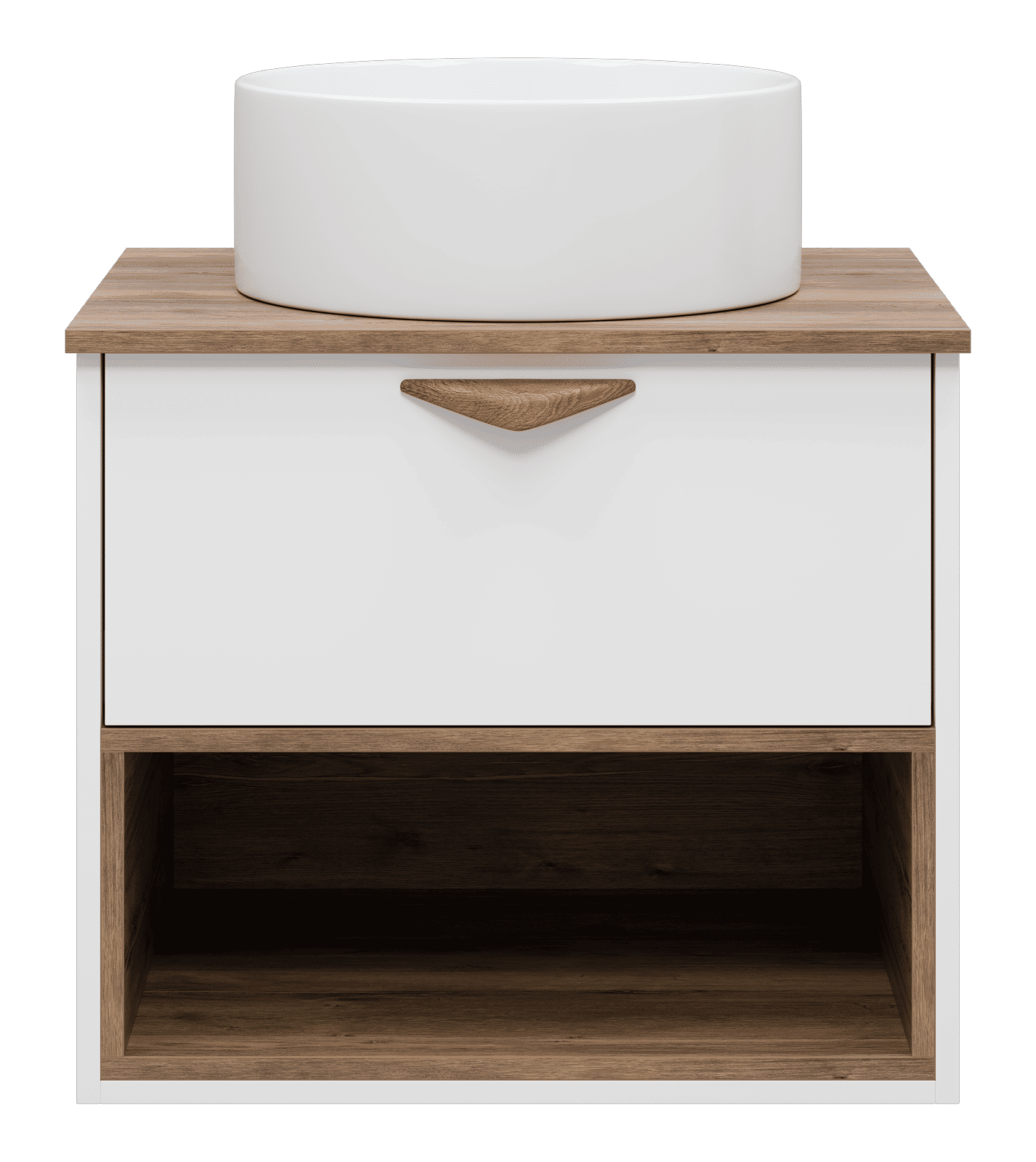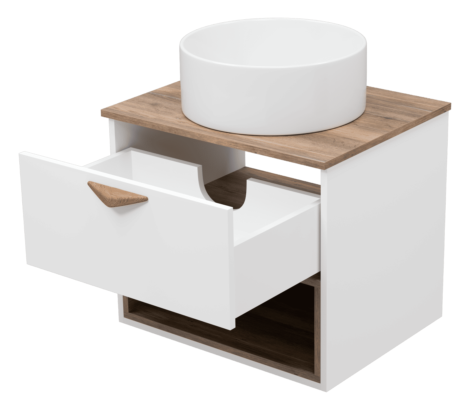 Тумба под раковину Brevita Bergen 60 подвесная с подсветкой 1 ящ. / BER-07060-19-01-1Я белый/темное дерево