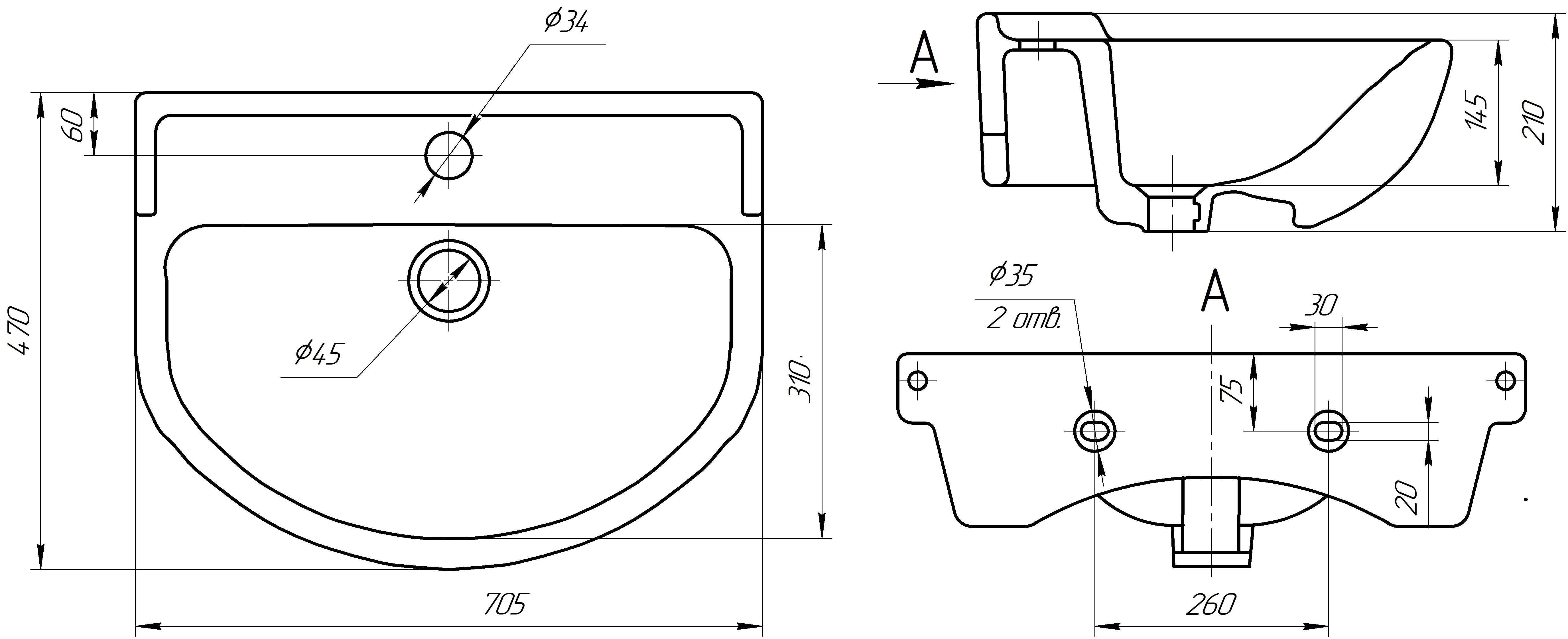 Раковина Универсал Амур 70 см / БП-Д000000982