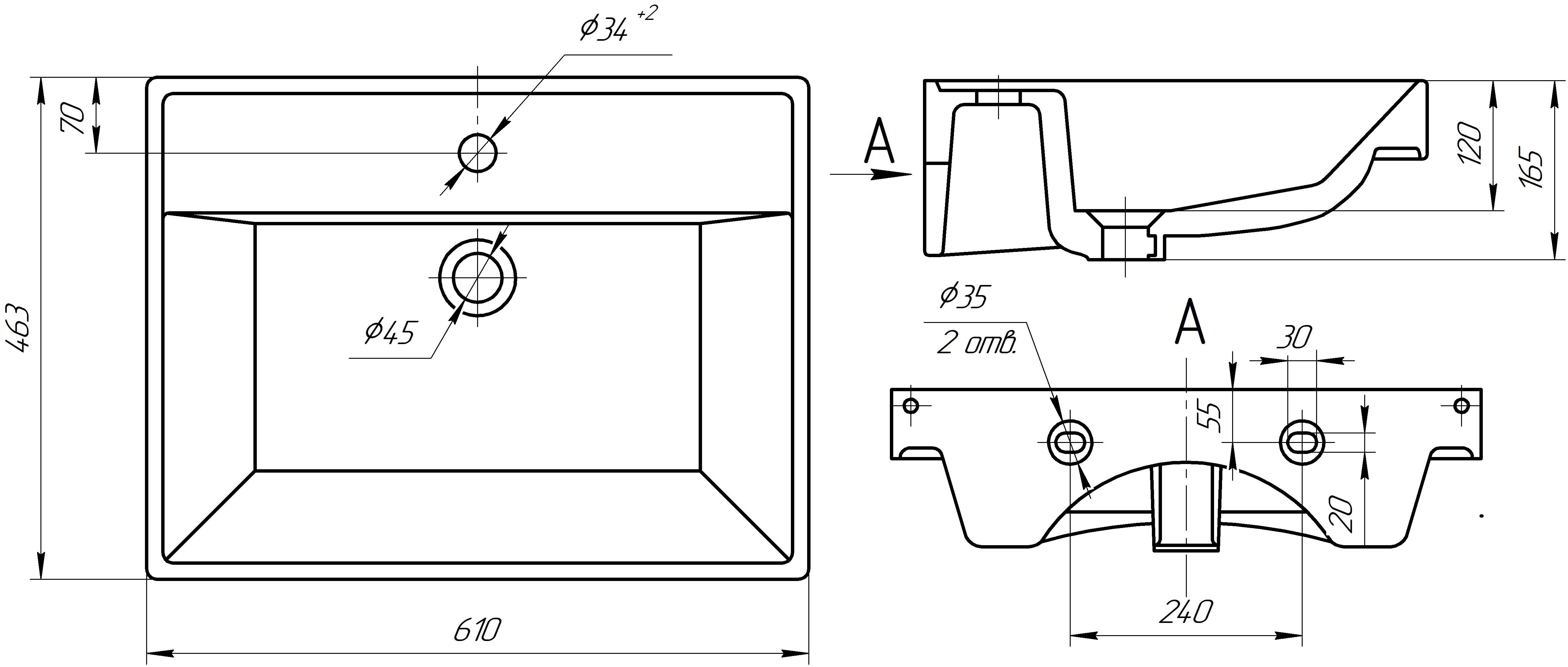 Раковина Универсал Енисей 60 см с/о / БП-э000000983