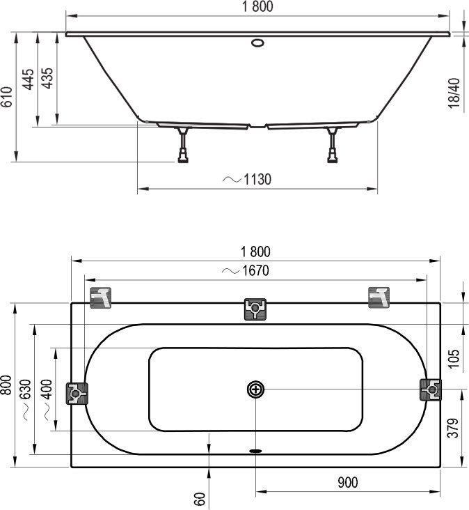 | Расположение перелива | По центру |