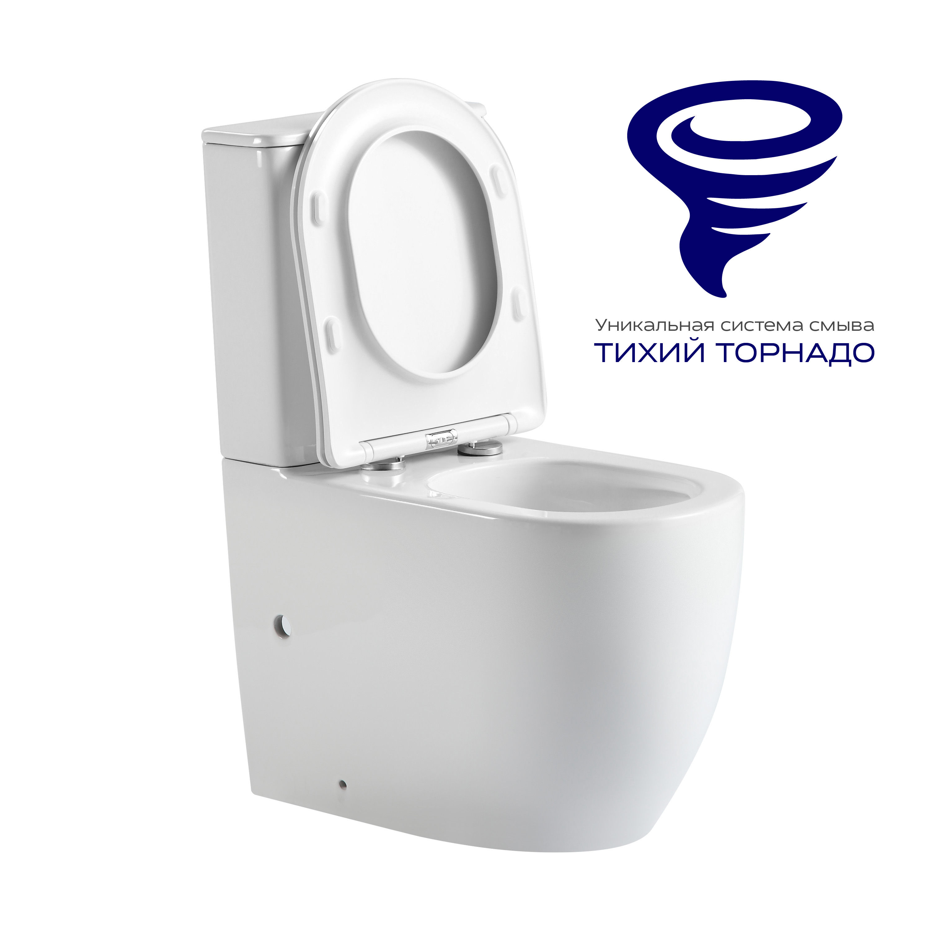 Смыв «Тихий Торнадо»: на 33% тише стандартных моделей. Эффективное использование воды: смыв 360° оставляет унитаз чистым, минимизируя бактерии и запахи.
