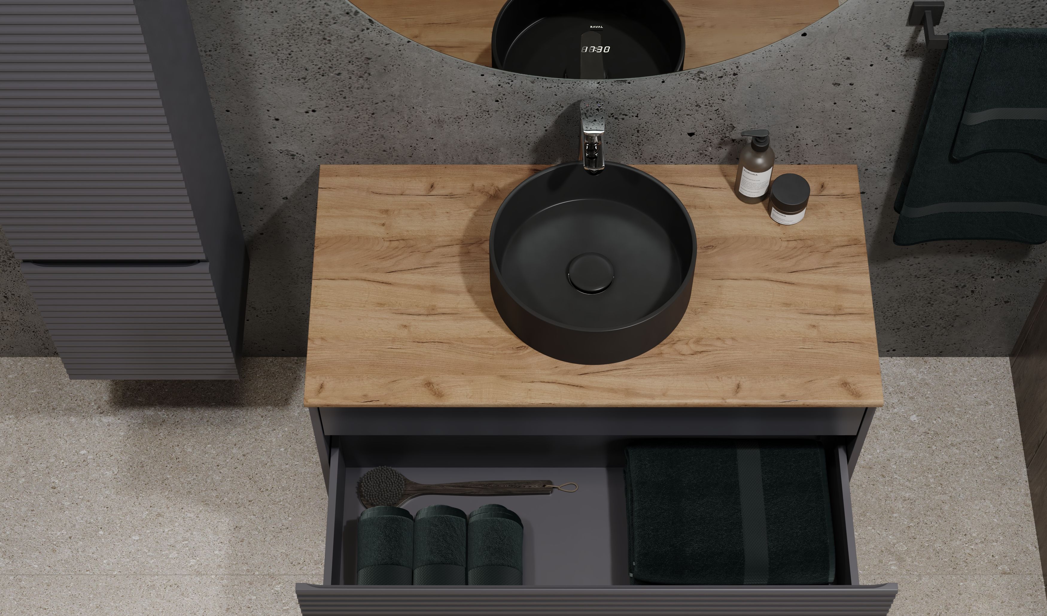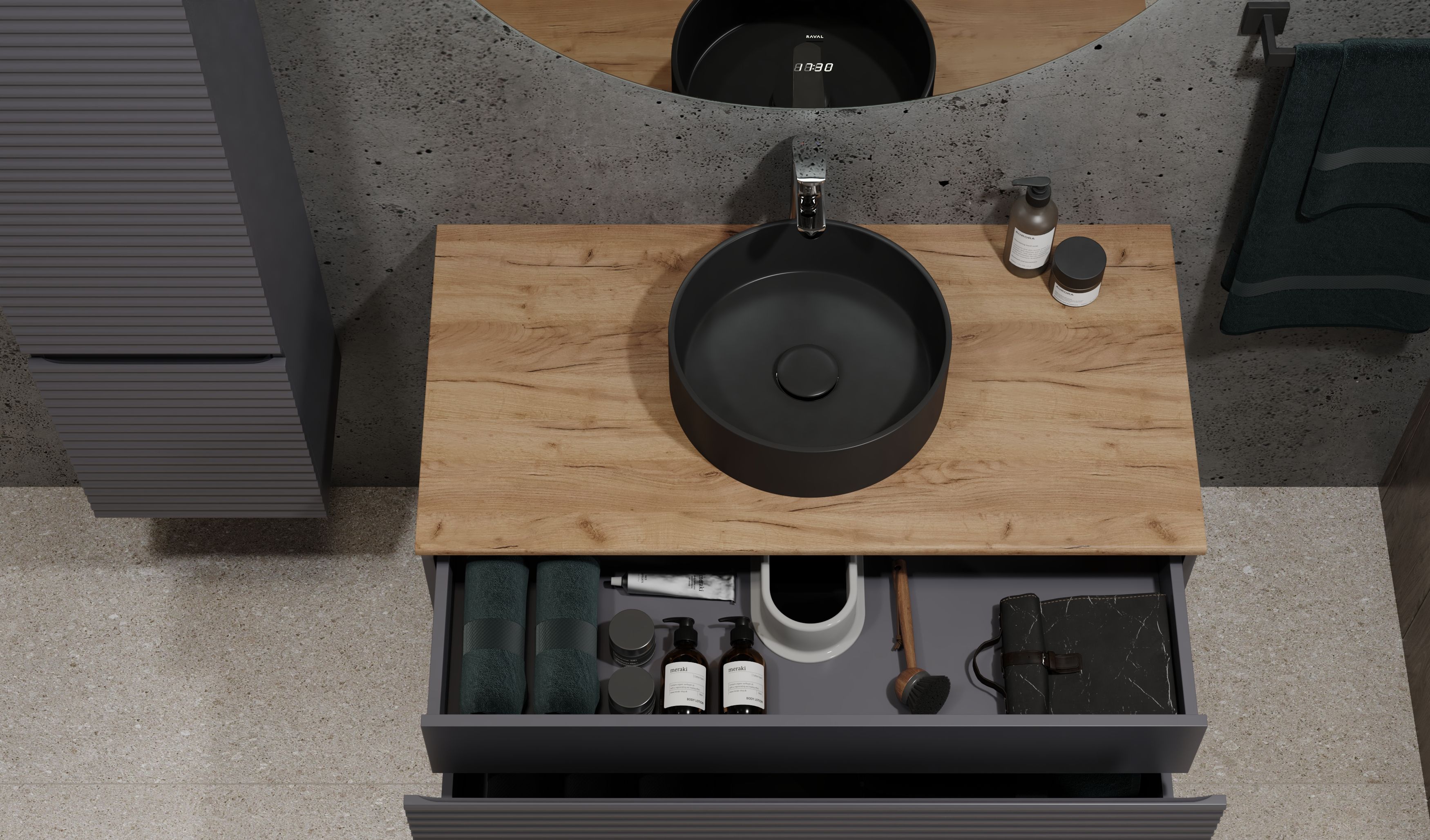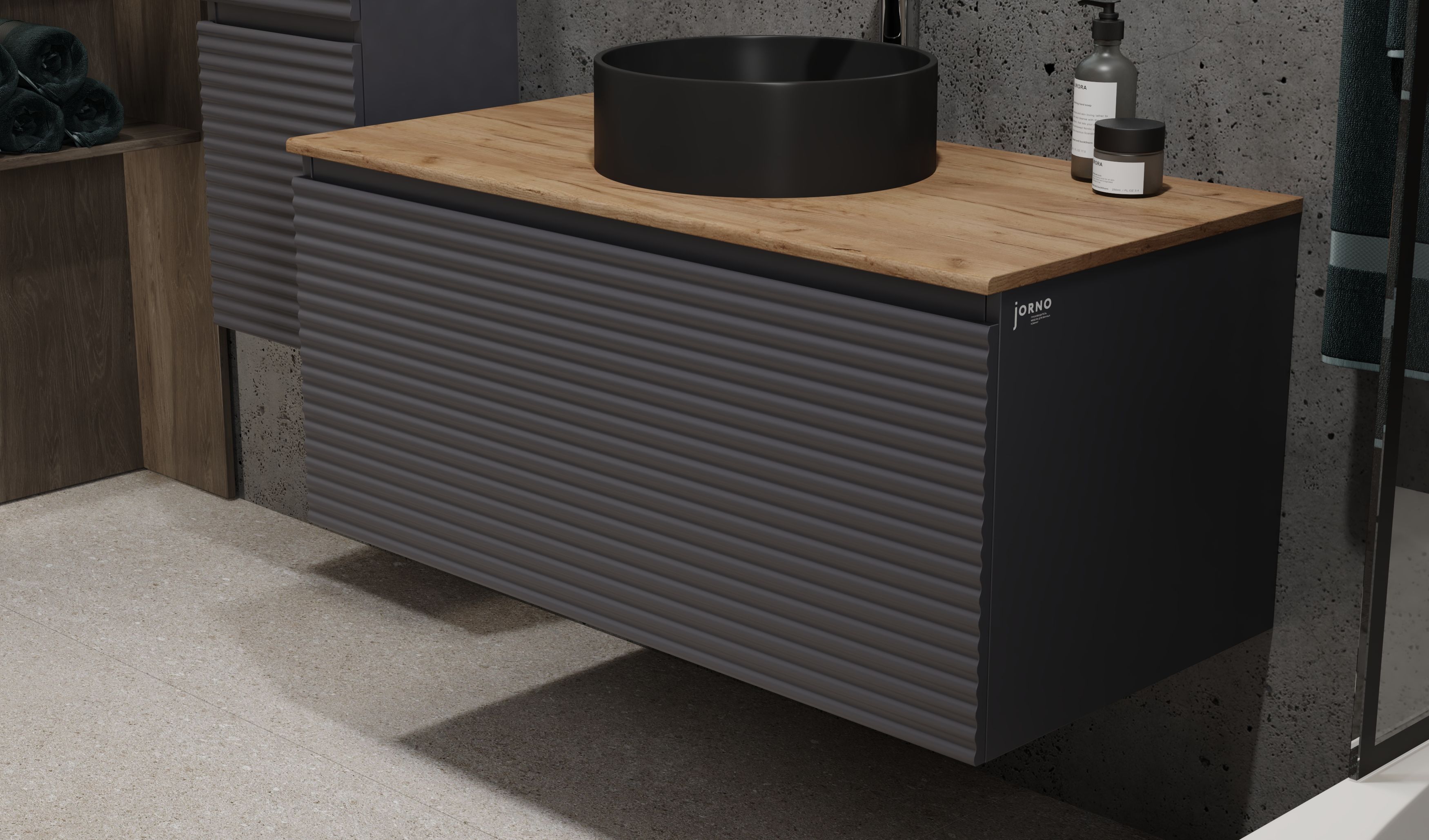 Деревянная столешница тумбы Jorno Cossety 100 отличается не только привлекательным внешним видом, но и превосходной влагостойкостью, устойчивостью к царапинам и резким перепадам температур, обеспечивая долговечность и сохранение первозданного вида на протяжении многих лет. Эффектное сочетание текстур столешницы и фасада добавляет глубину и шарм, делая каждое использование тумбы под раковину Jorno Cossety 100 по-настоящему приятным.