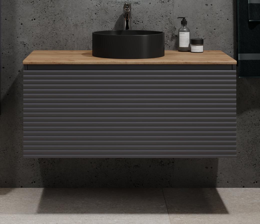 Тумба под раковину Jorno Cossety 100 подвесная / Coss.01.100/P/A-DZ/JR антрацит/дуб крафт золотой