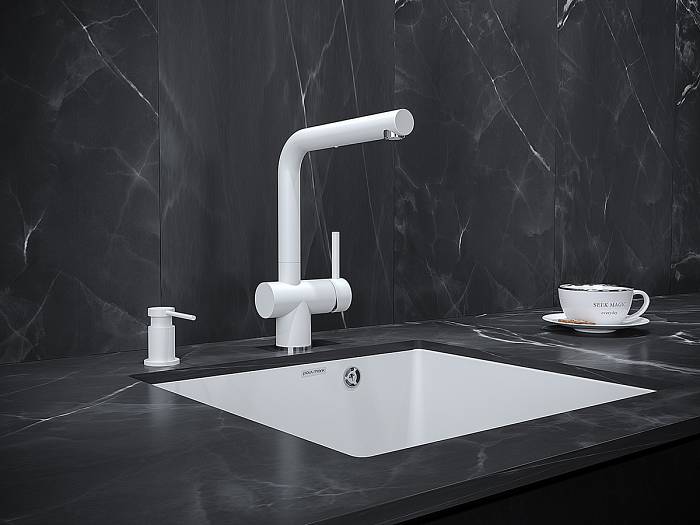 Встроенная конструкция позволяет незаметно скрыть все компоненты в столешнице или раковине, поддерживая чистоту и минимализм интерьера, где каждая деталь способствует легкости ухода и предотвращает разбрызгивание средств. Помпа, созданная из прочной латуни, гарантирует исключительную надежность и плавную работу, стойко выдерживая постоянное использование без риска коррозии или износа. Колба, выполненная из качественного полимера, вмещает до 350 миллилитров моющего средства, предоставляя достаточный запас для интенсивной кухонной активности и позволяя точно регулировать дозу, экономя продукт и время на каждом этапе.