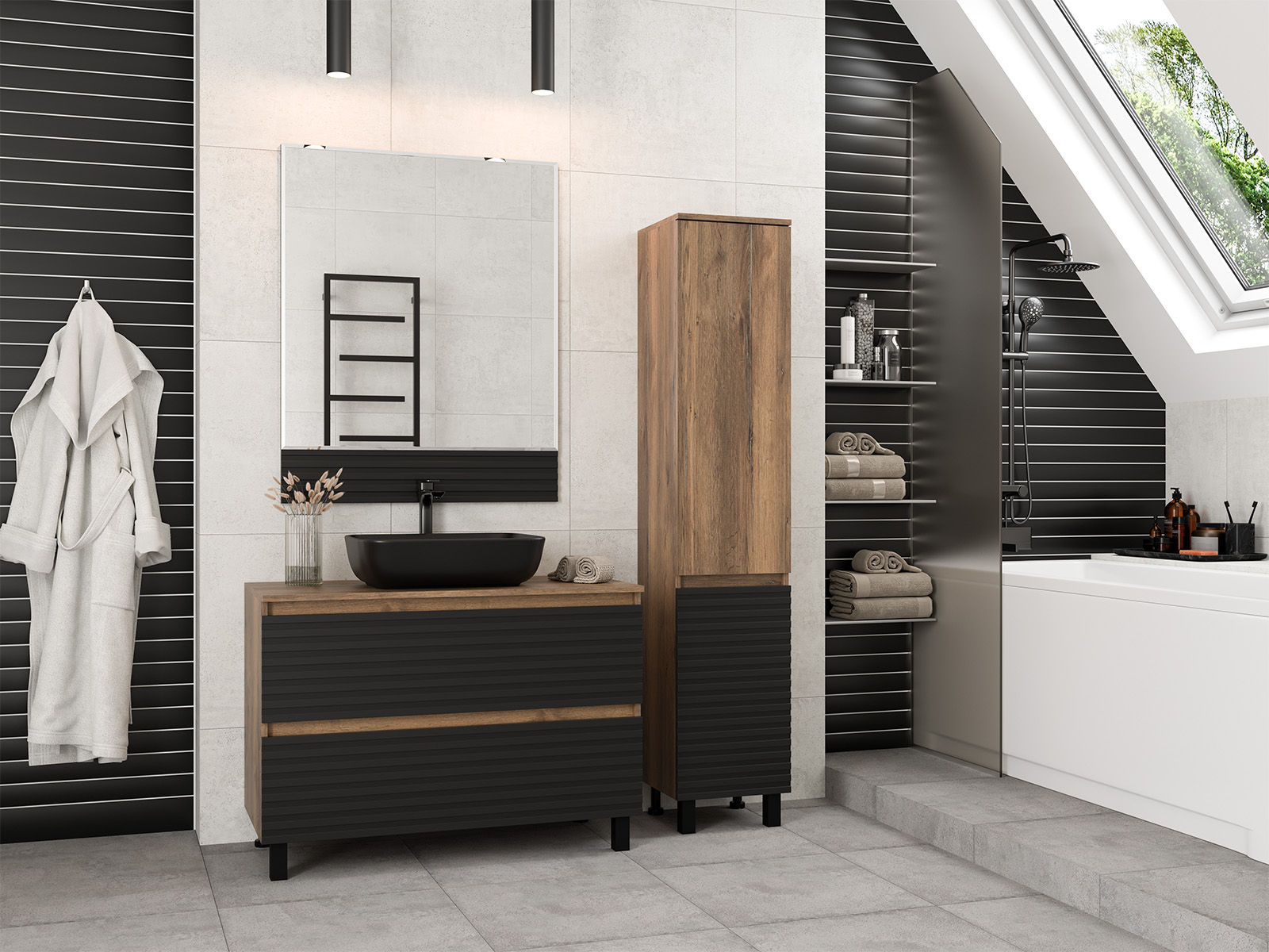 Стильная мебель в ванную Dakota от бренда Brevita сочетает в себе оригинальный внешний вид фрезерованных фасадов и практичную конструкцию с высоким качеством сборки. Высокое качество сборки, практичность, функциональность и эффектный внешний вид сделают эту мебель оригинальным дизайнерским решением для современной ванной комнаты.