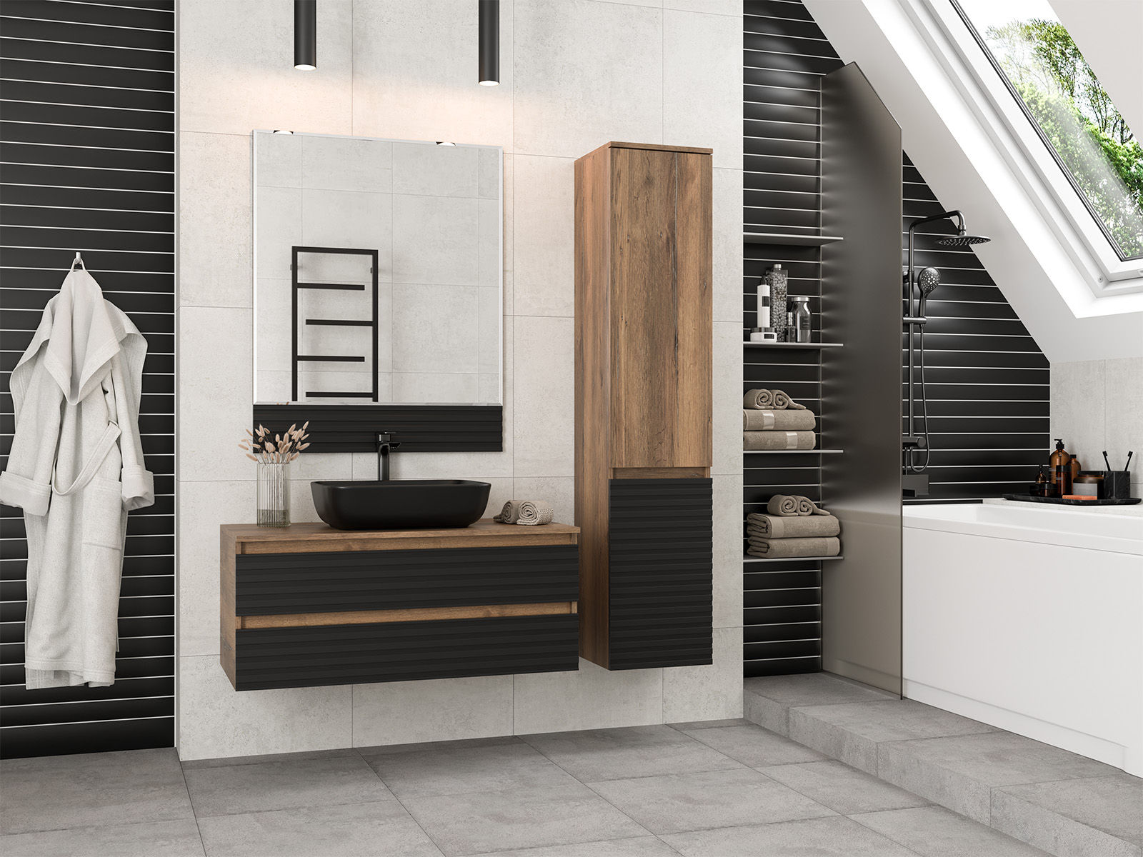 Стильная мебель в ванную Dakota от бренда Brevita сочетает в себе оригинальный внешний вид фрезерованных фасадов и практичную конструкцию с высоким качеством сборки. Высокое качество сборки, практичность, функциональность и эффектный внешний вид сделают эту мебель оригинальным дизайнерским решением для современной ванной комнаты.