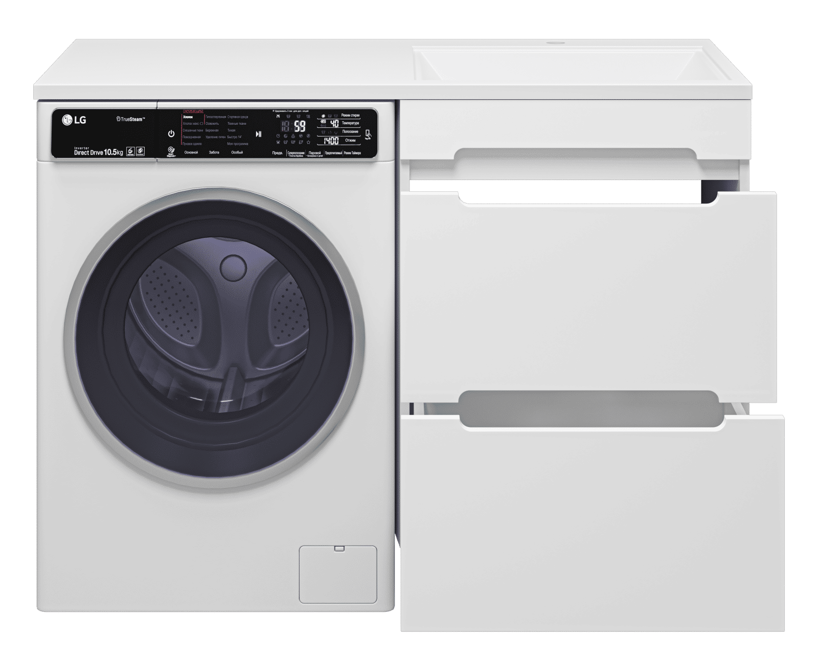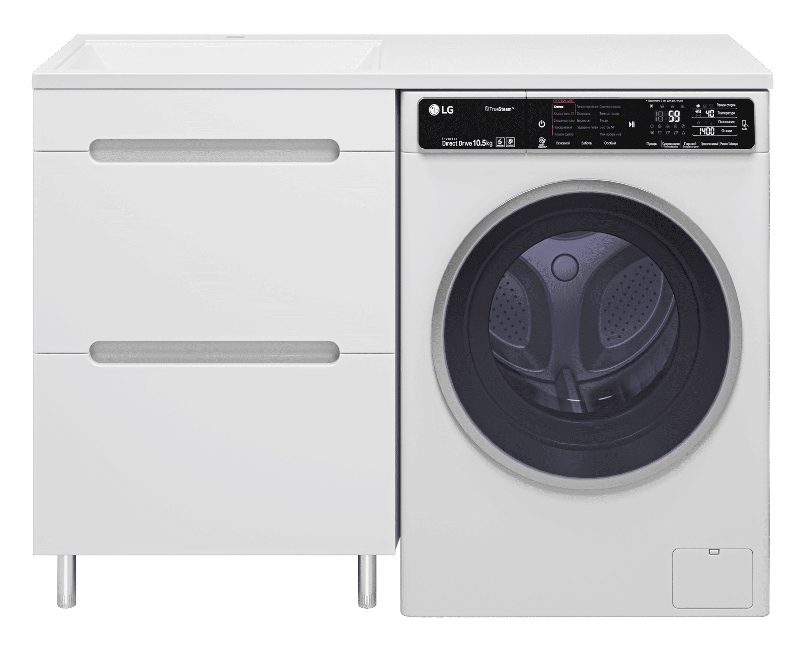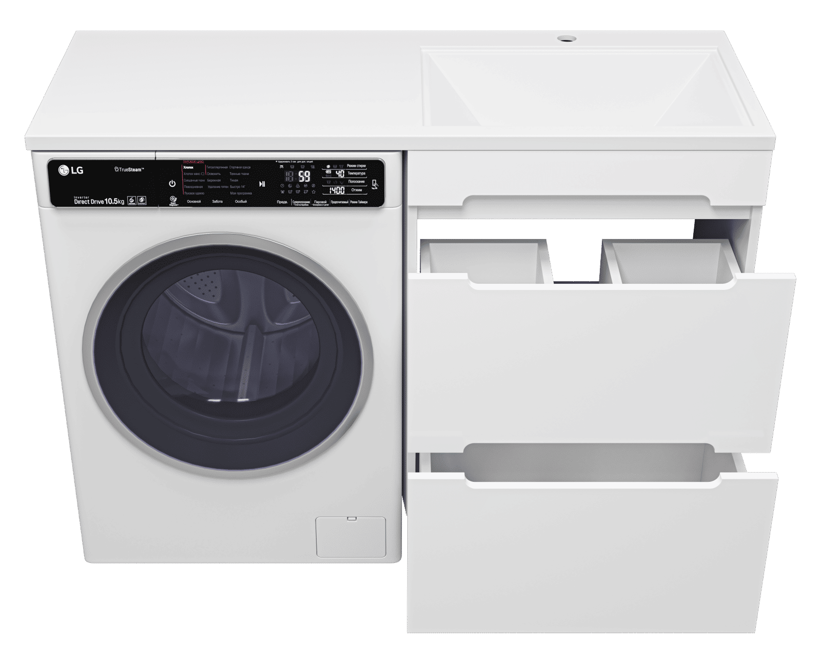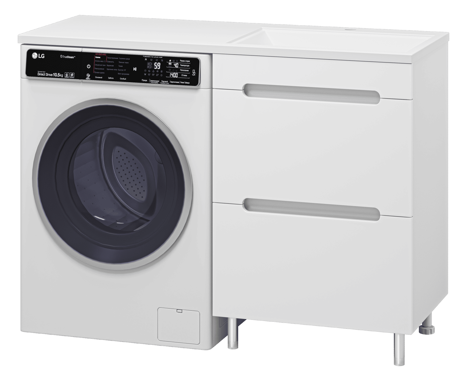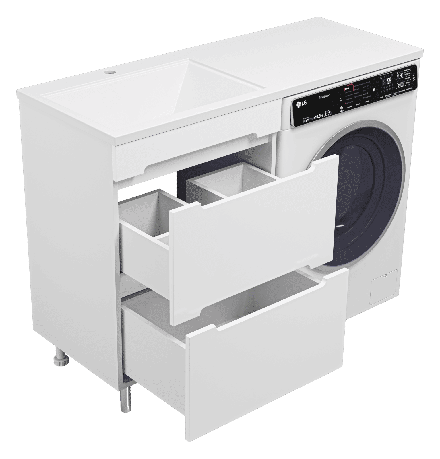 Комплектуются раковинами из литьевого мрамора для установки со стиральной машиной.