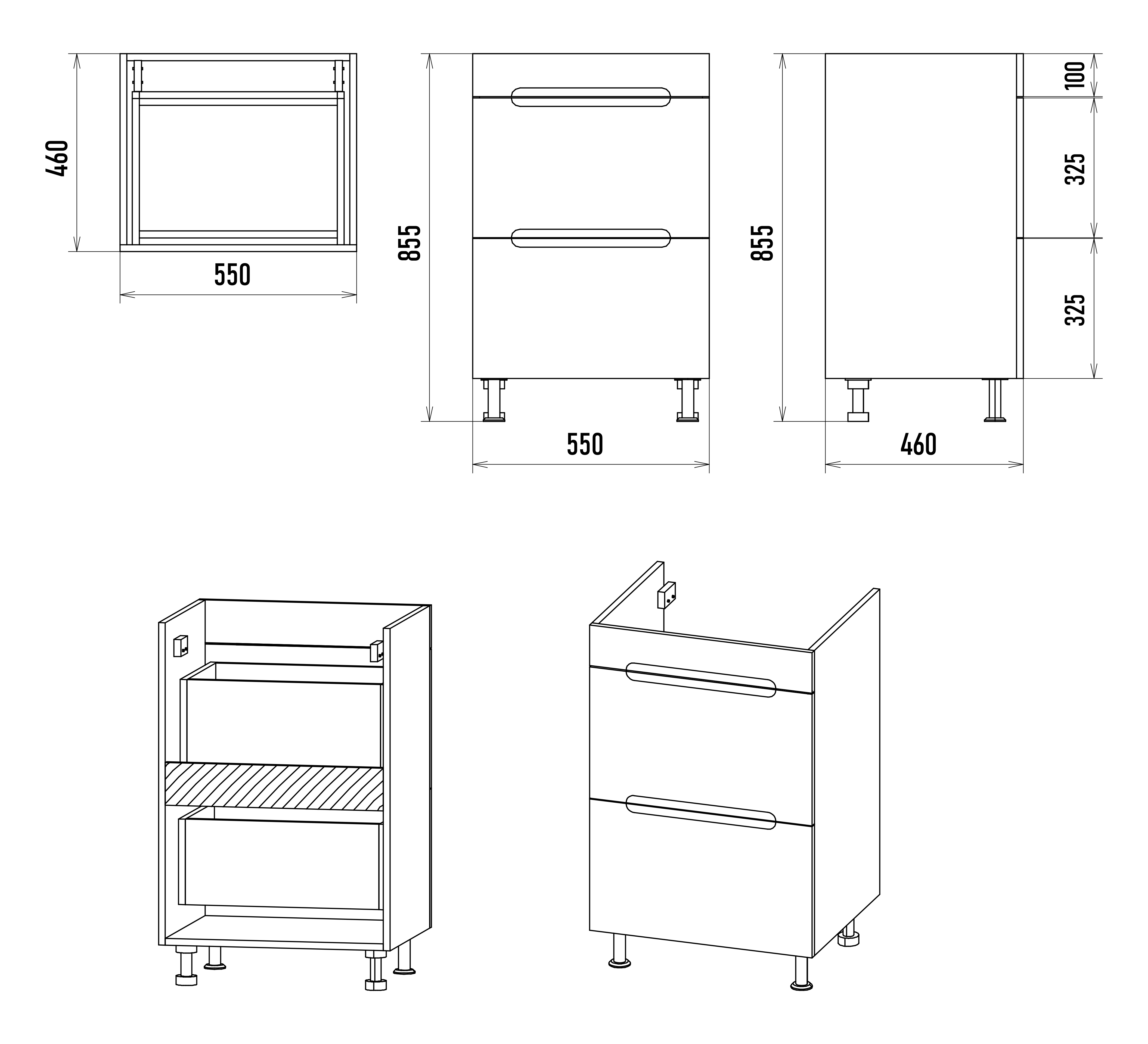 Напольный монтаж с регулируемыми опорами.