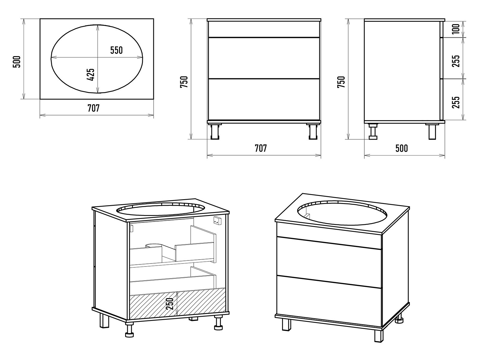 Тумба под раковину Brevita Enfida 70 напольная 2 ящ. / ENF-06070-0342Я бежевая матовая эмаль