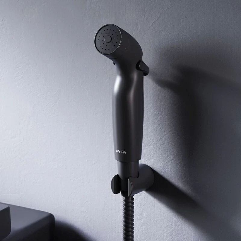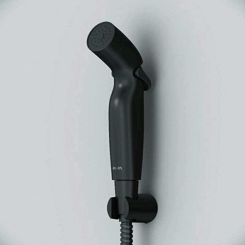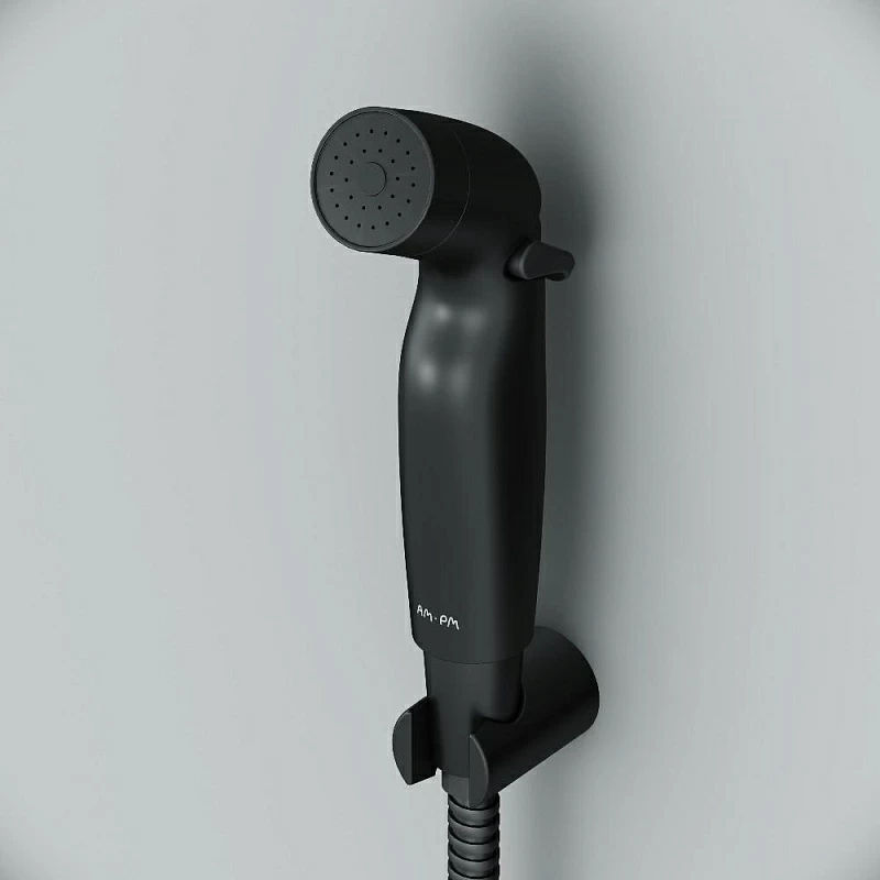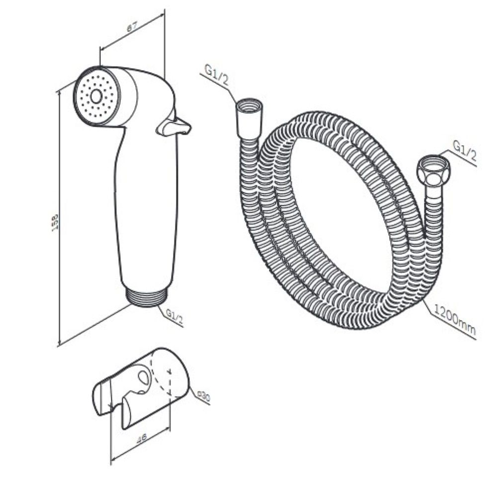 Гигиеническая лейка в комплекте с шланговым подсоединением-держателем и шлангом. Шарнирное соединение защищает душевой шланг от перекручивания.