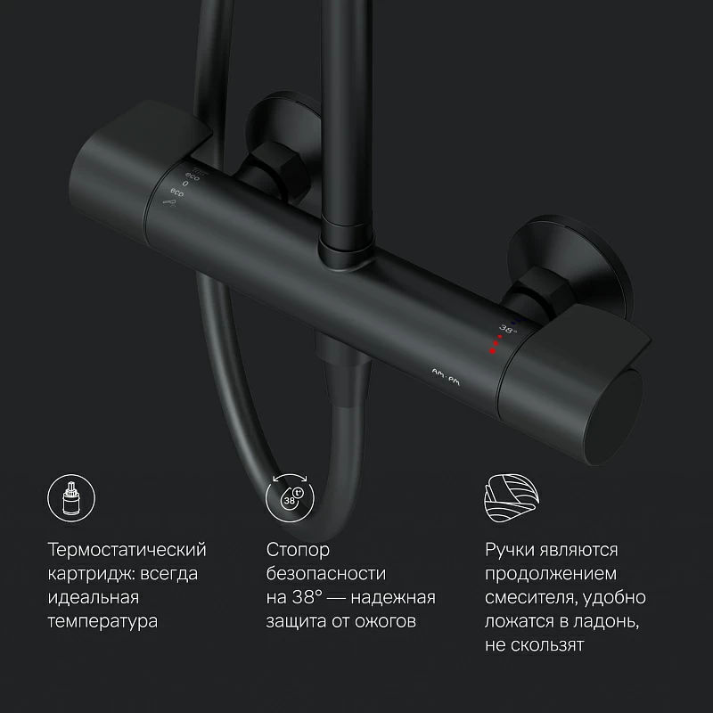 благодаря специально спроектированной эргономичной ручке вы можете управлять душевой системой даже с мыльными руками;