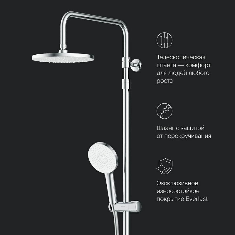 благодаря специально спроектированной эргономичной ручке вы можете управлять душевой системой даже с мыльными руками;