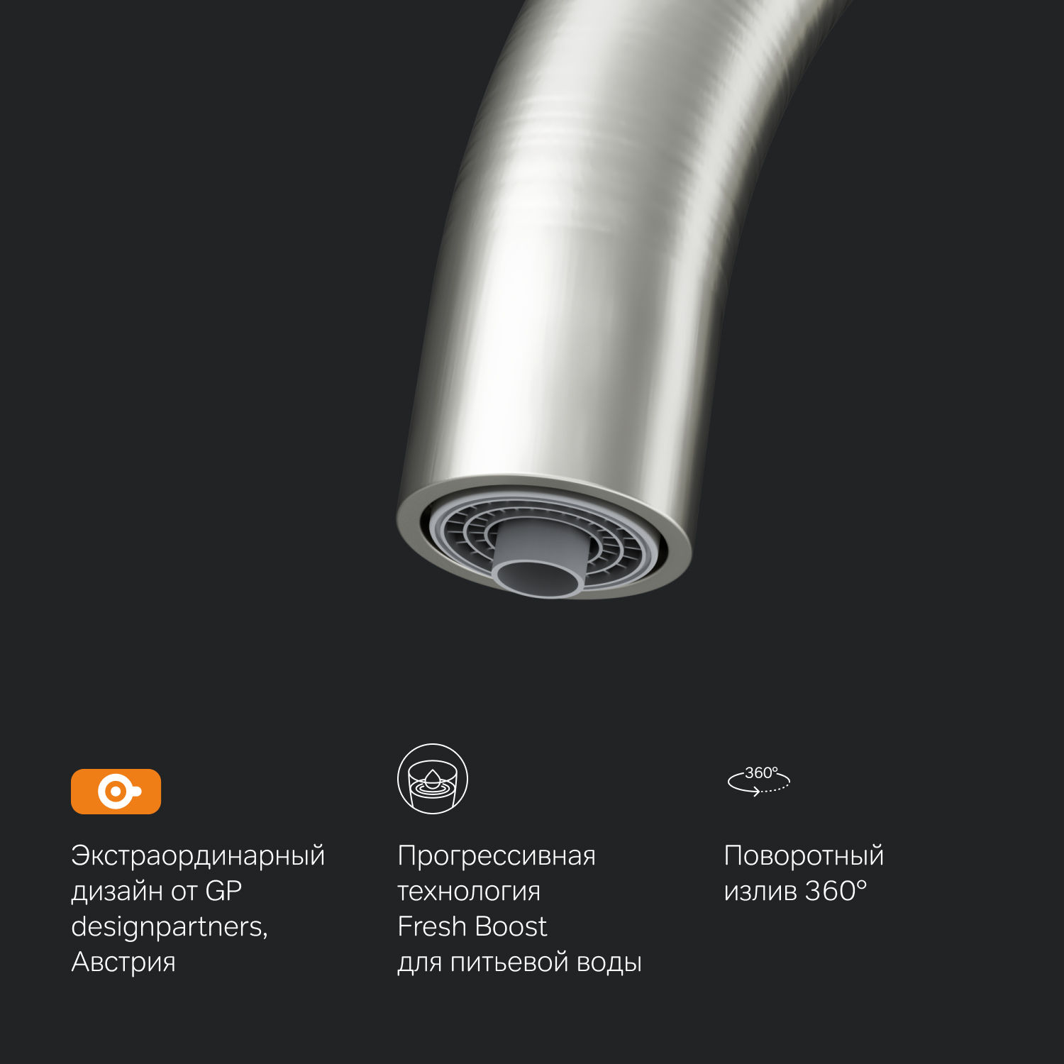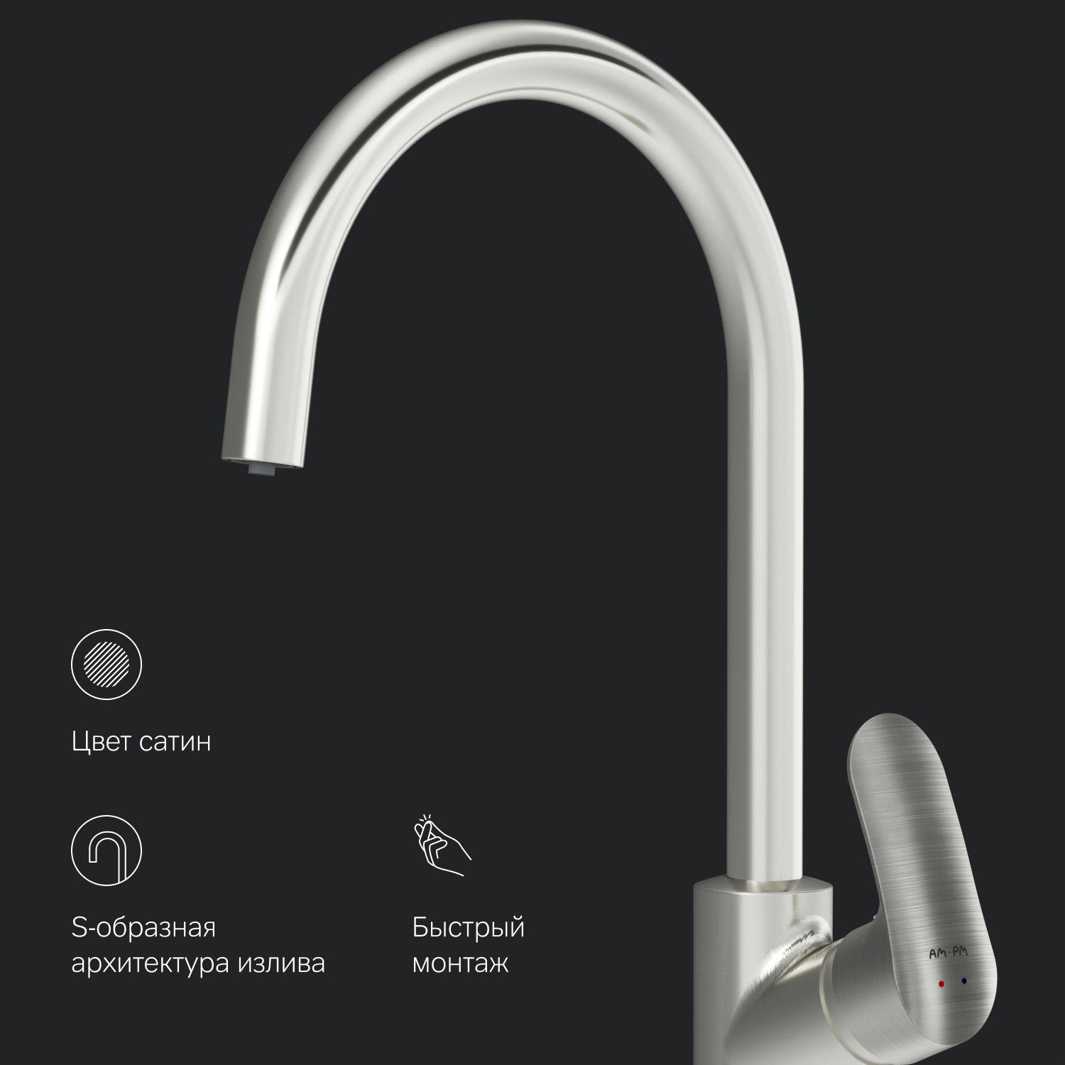 Кухонный смеситель АМ.РМ коллекции Like со встроенным каналом для питьевой воды успешно совмещает в себе два в одном. Благодаря прогрессивной технологии Fresh Boost при вращении ручки на 90 градусов вы можете наслаждаться чистой водой из фильтра. Если же Вам нужна обычная вода смеситель управляется привычным способом. Также конструкция совмещающая в себе 2 в 1 экономит место и придает кухне опрятный вид без лишних элементов. Ультрамодный стиль смесителя Dynamic Organic — это природные формы в сочетании с четкими линиями доведенными до совершенства человеком.