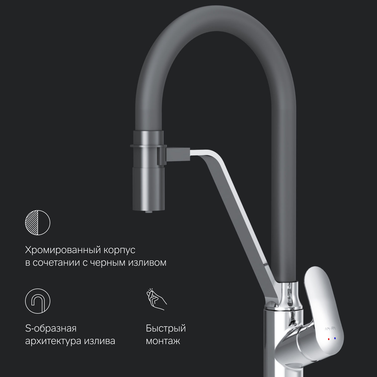 Смеситель для кухни AM.PM Like F8007802 для питьевой воды и гибким изливом (хром)