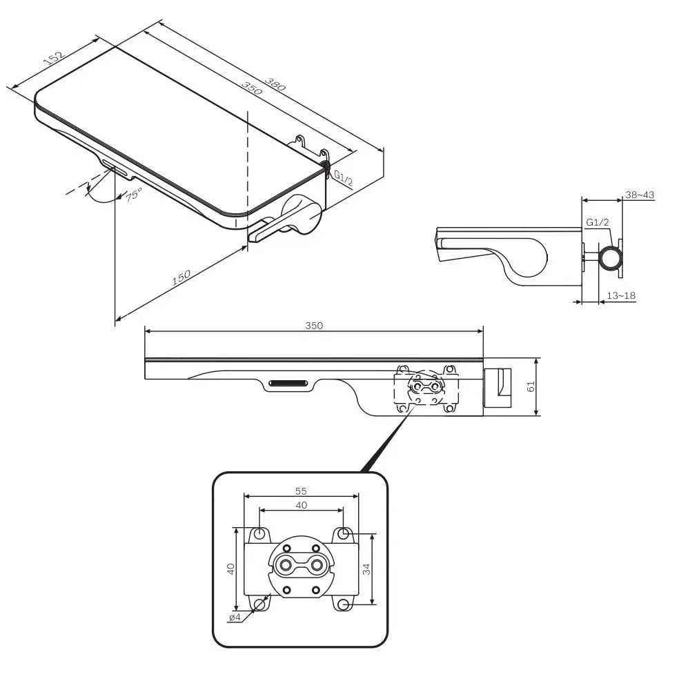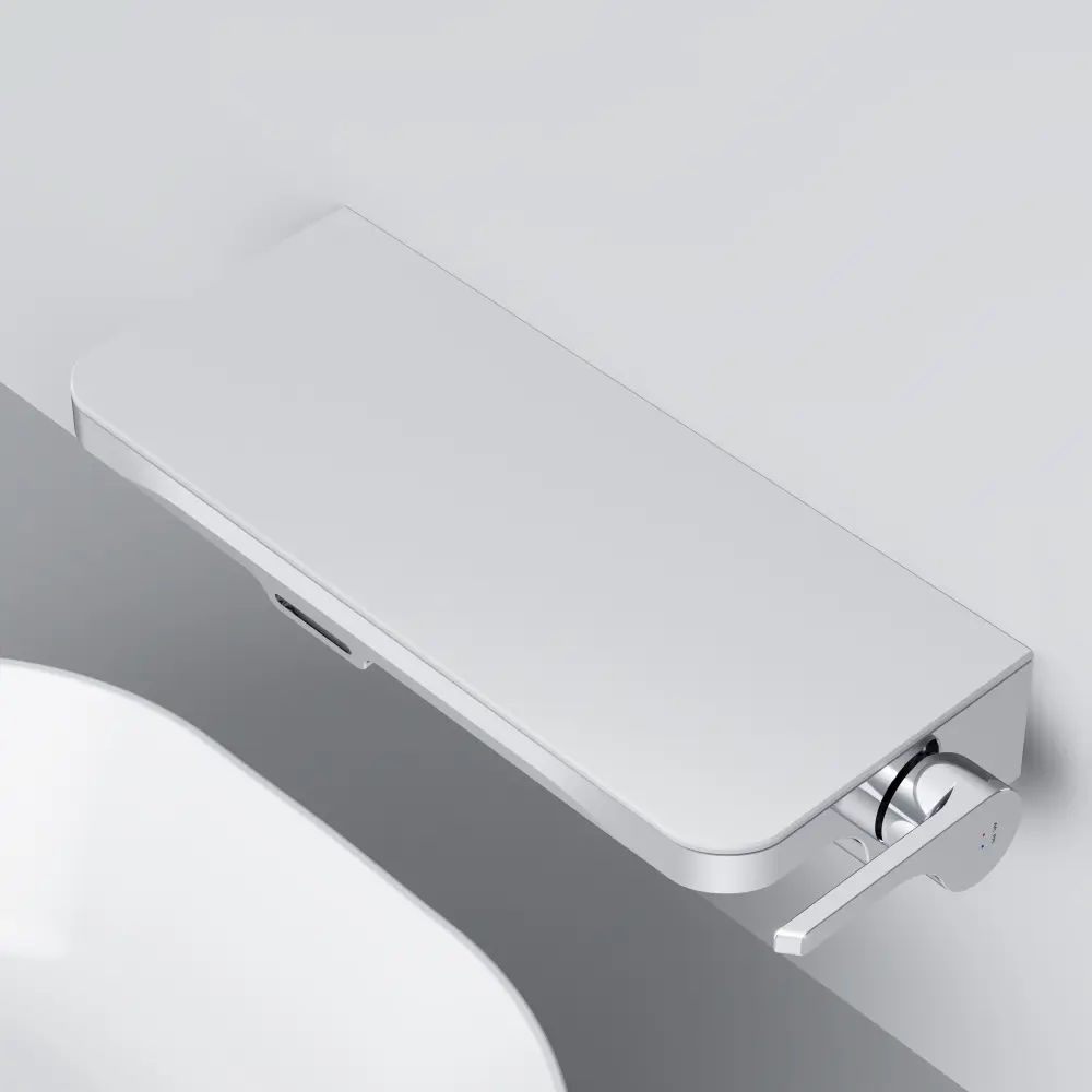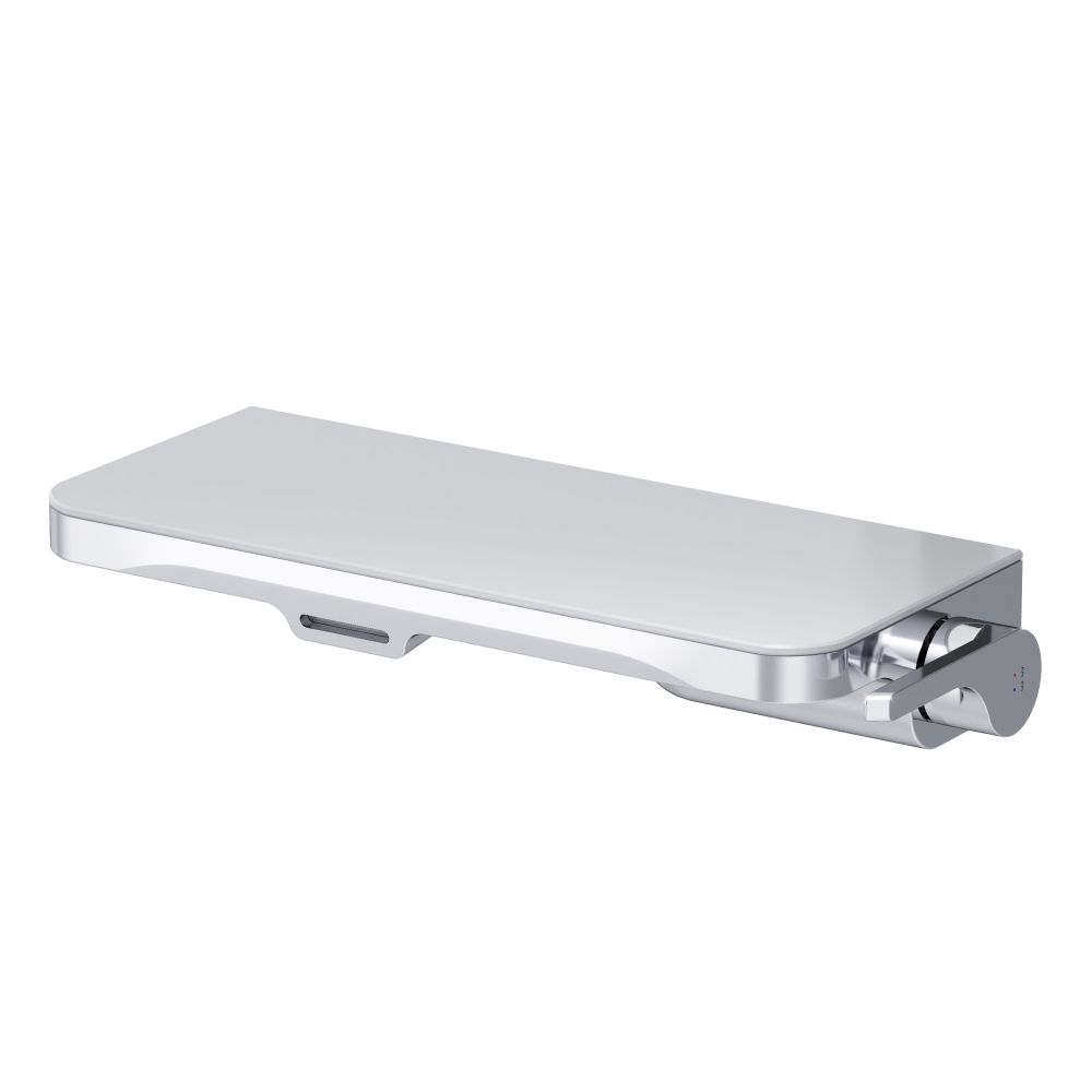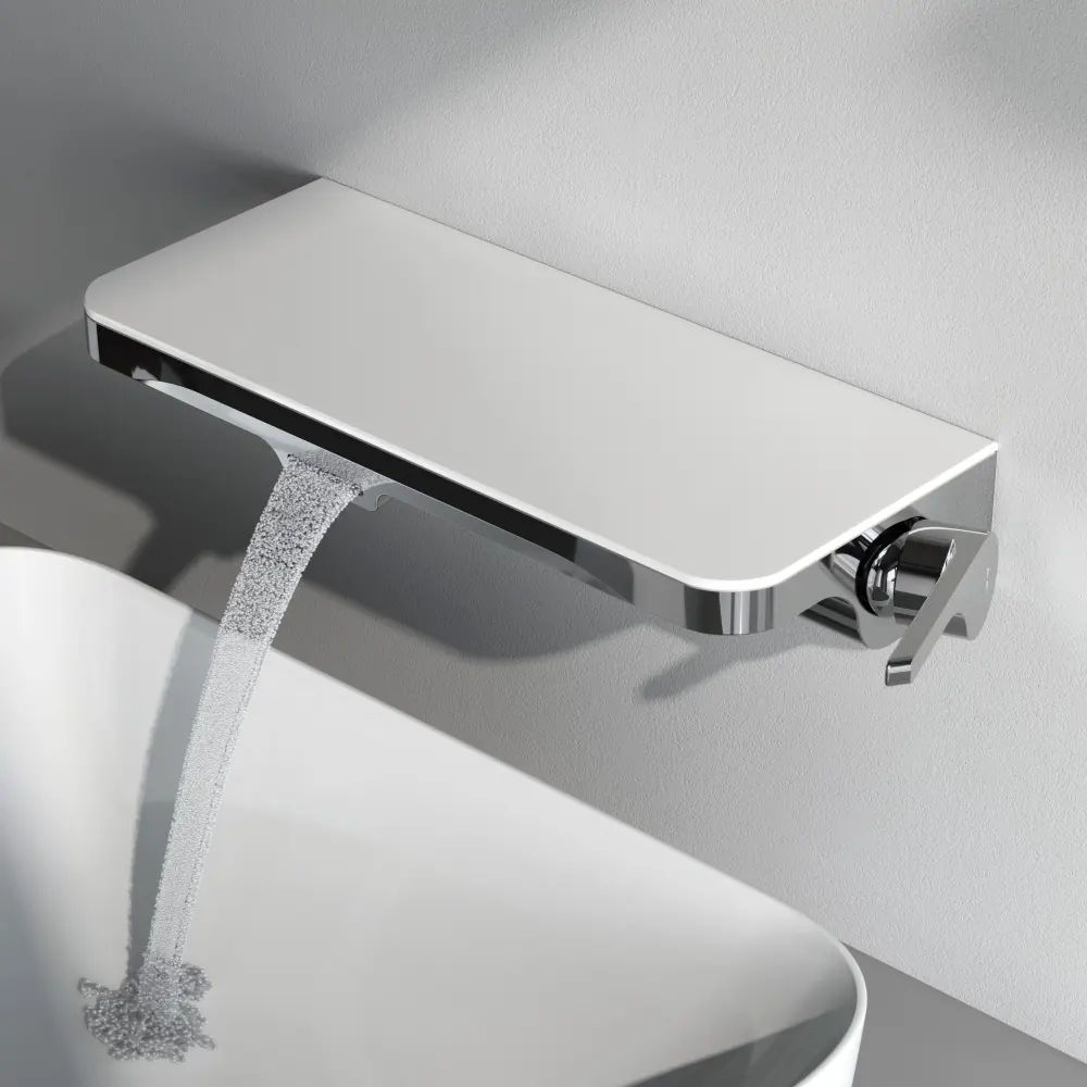 Еще больше полезного пространства: смеситель выполнен в виде вместительной полочки. Внушительный размер полки (35 см) позволяет хранить все любимые средства под рукой, а эстетичный силуэт станет настоящим украшением современной ванной комнаты.