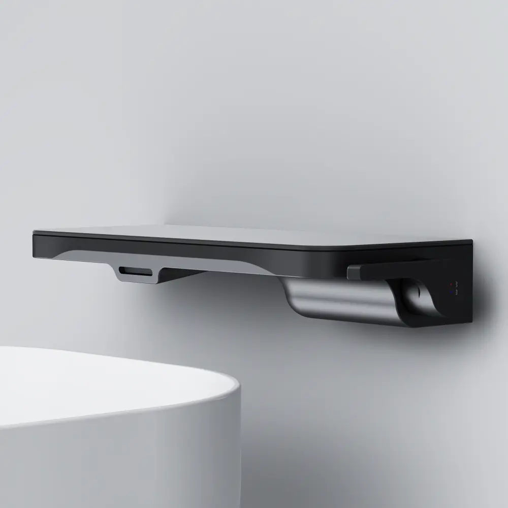 Еще больше полезного пространства: смеситель выполнен в виде вместительной полочки. Внушительный размер полки (35 см) позволяет хранить все любимые средства под рукой, а эстетичный силуэт станет настоящим украшением современной ванной комнаты.