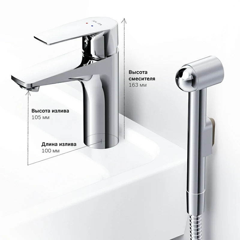 Смеситель для раковины AM.PM Gem F90A03000 с гигиеническим душем, хром