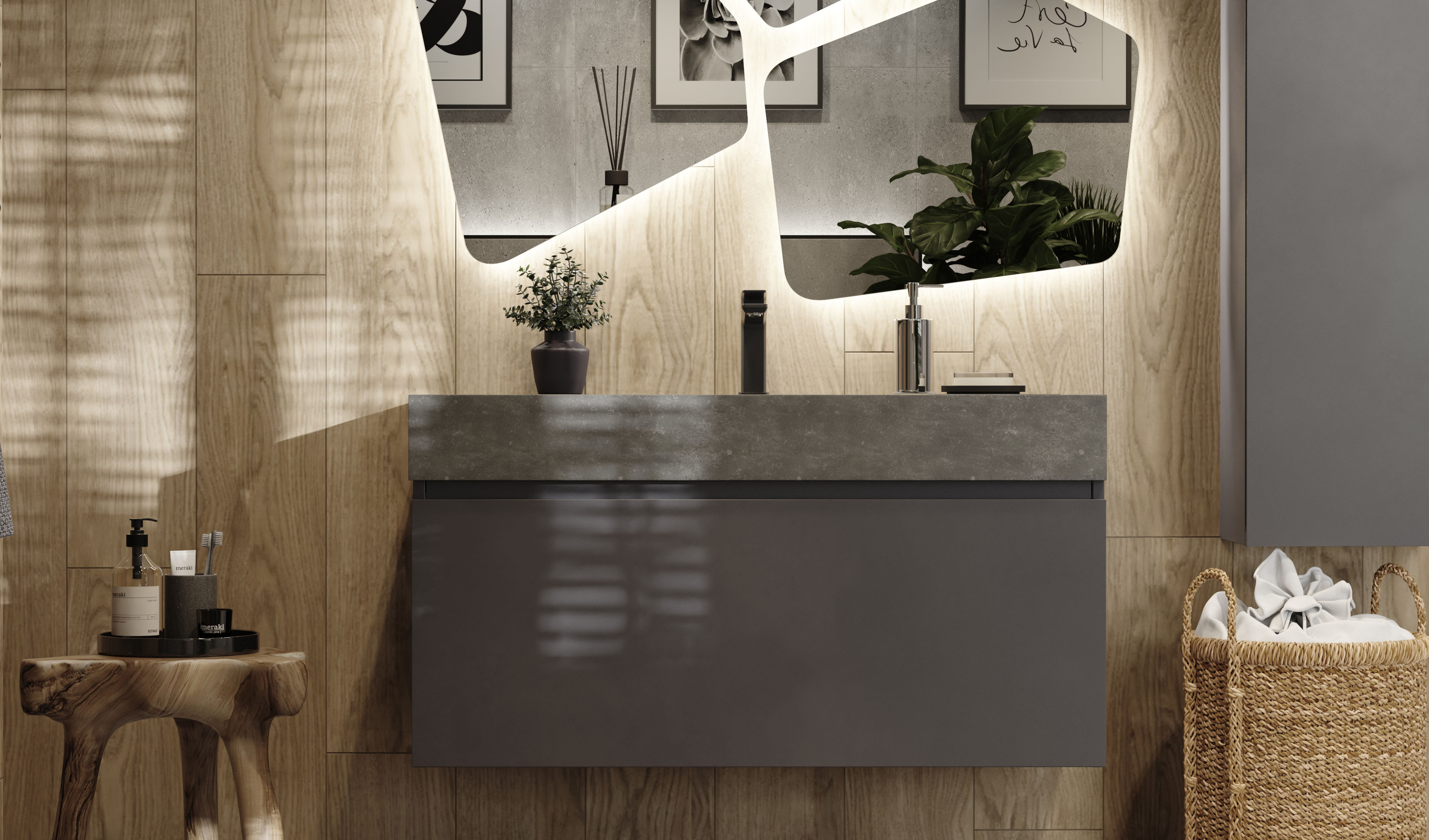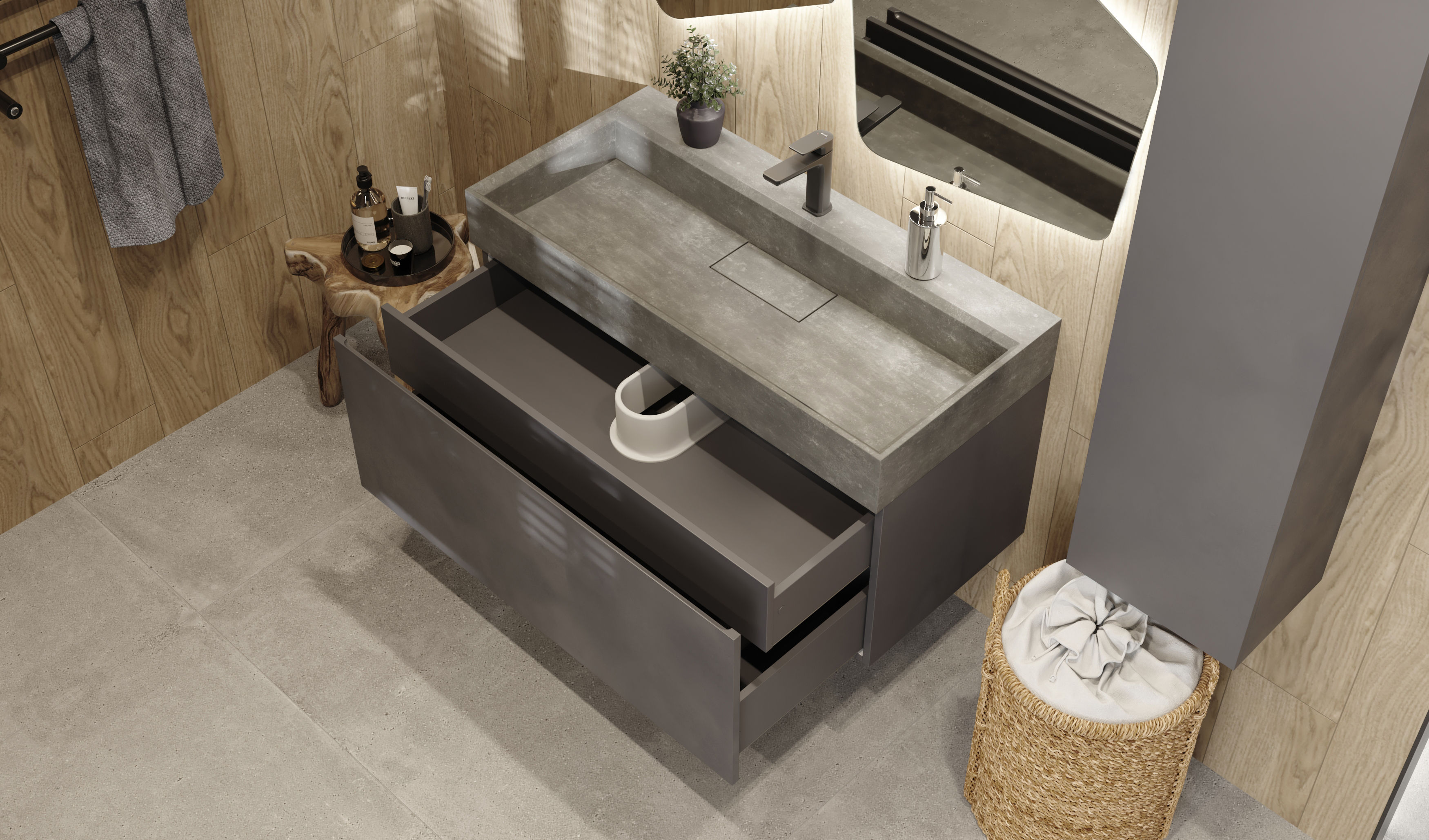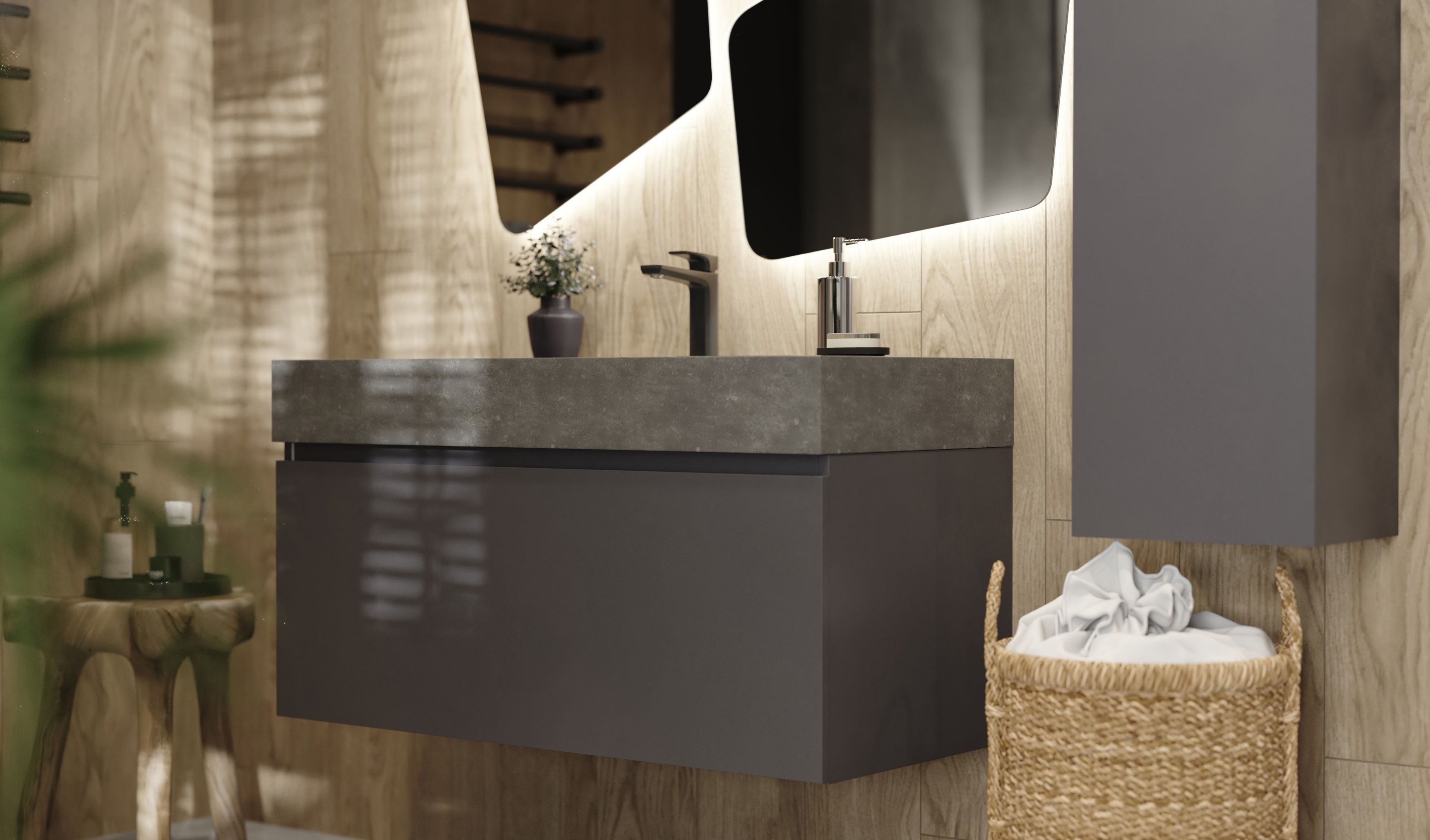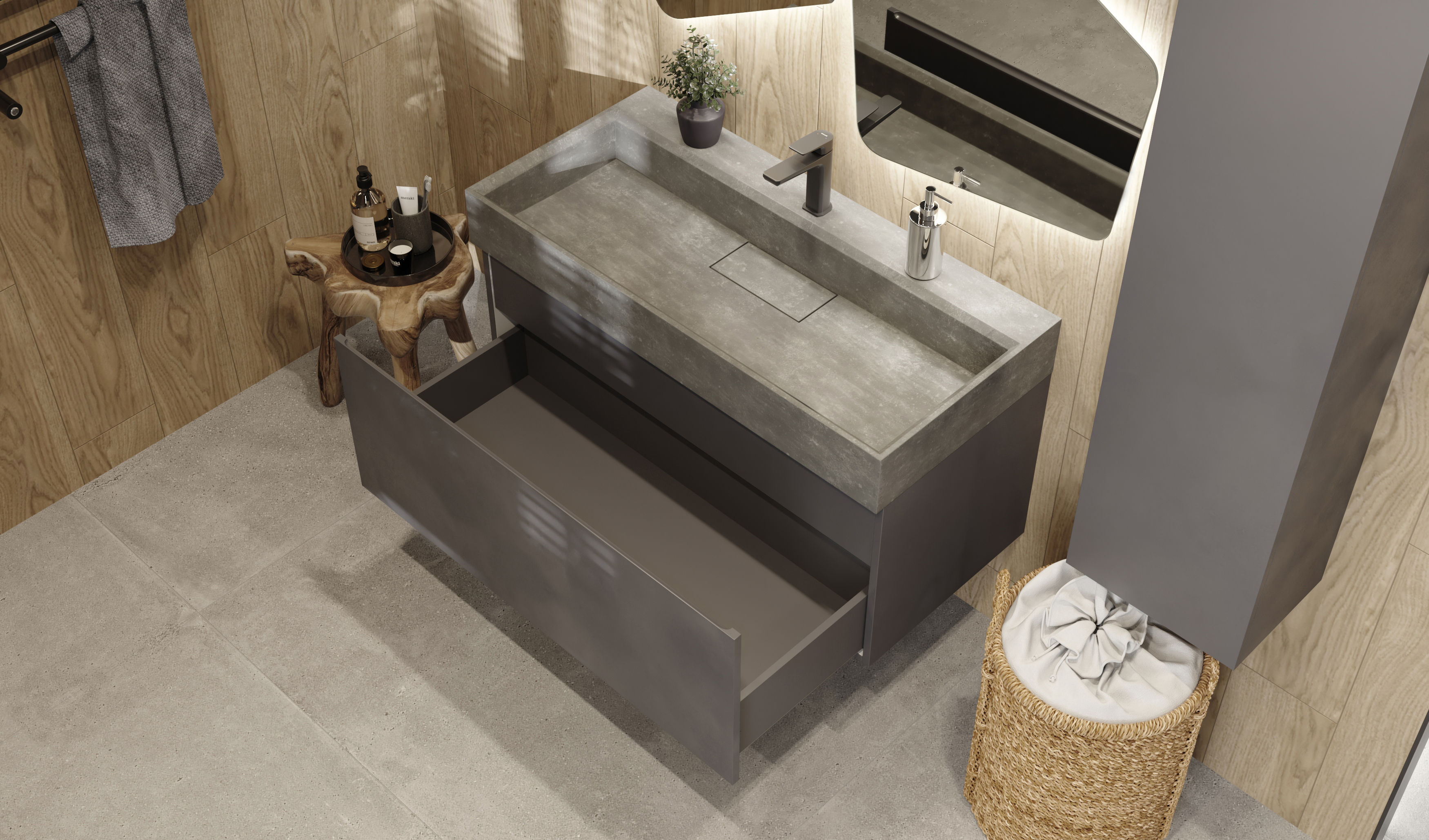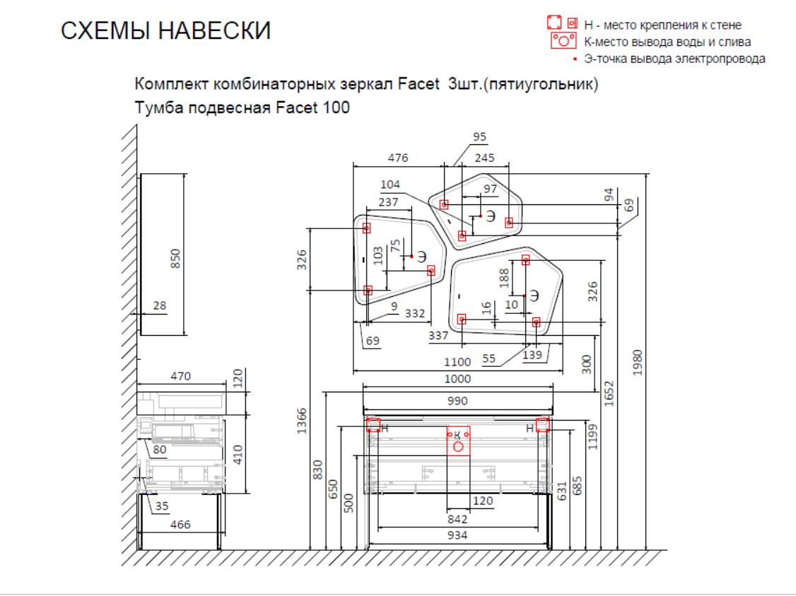 Тумба под раковину Raval Facet 100 подвесная Fac.01.100/P/A/RL антрацит