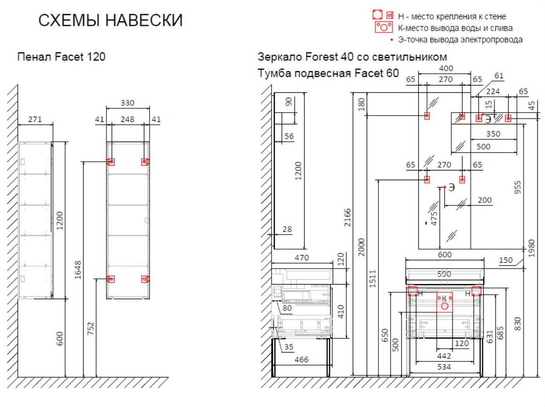 Тумба под раковину Raval Facet 60 подвесная Fac.01.60/P/A/RL антрацит