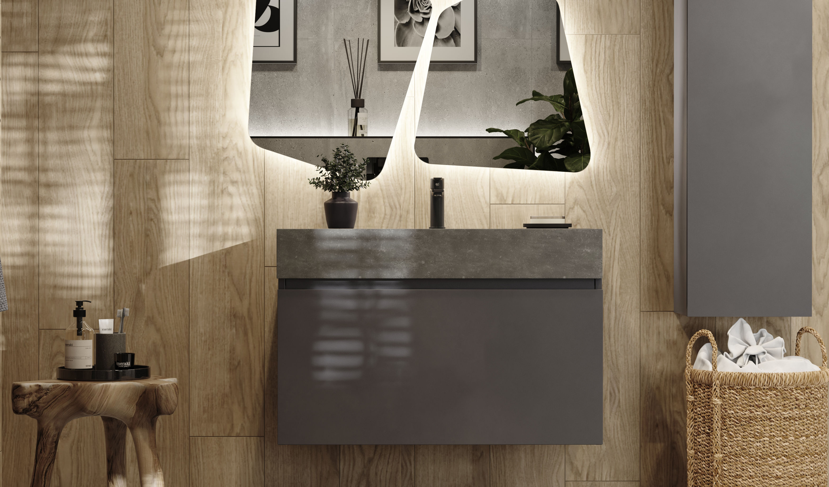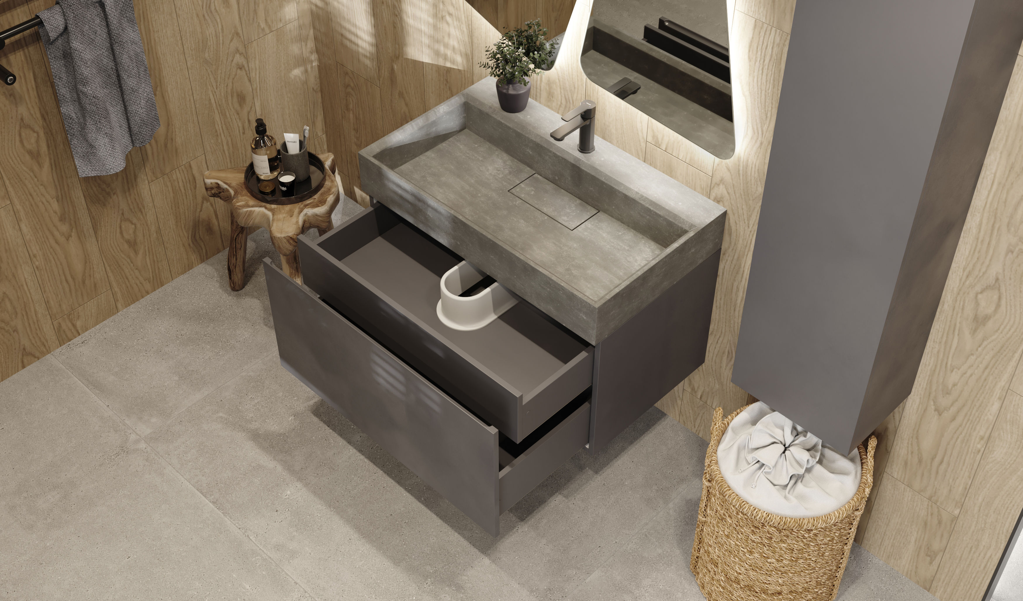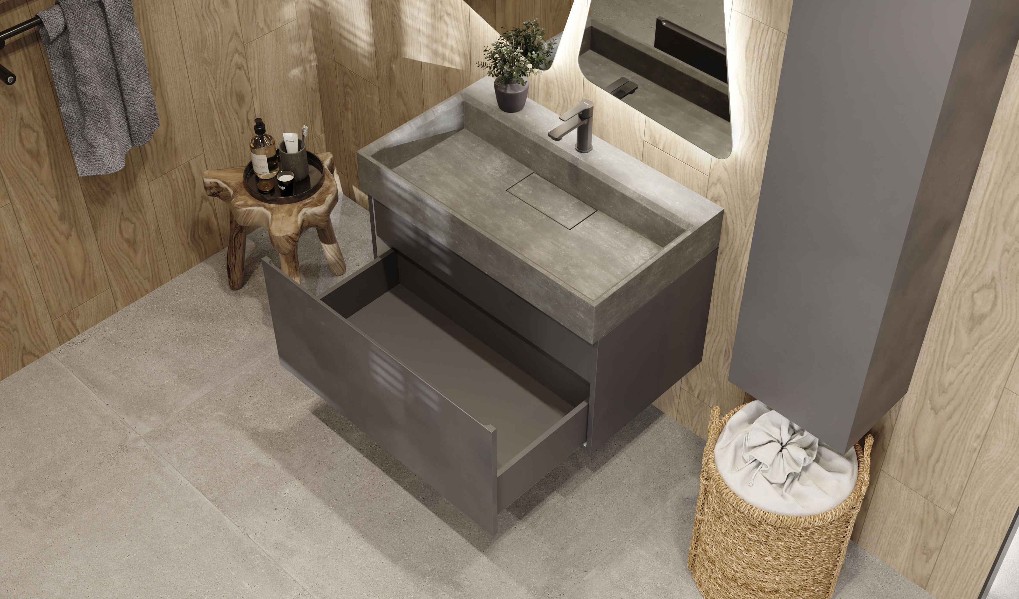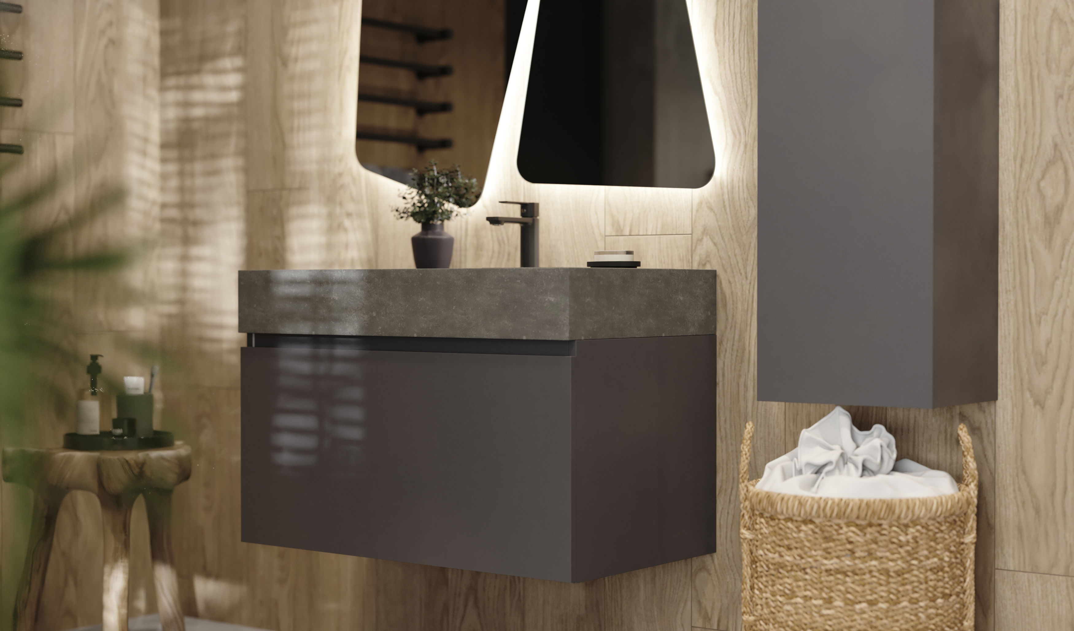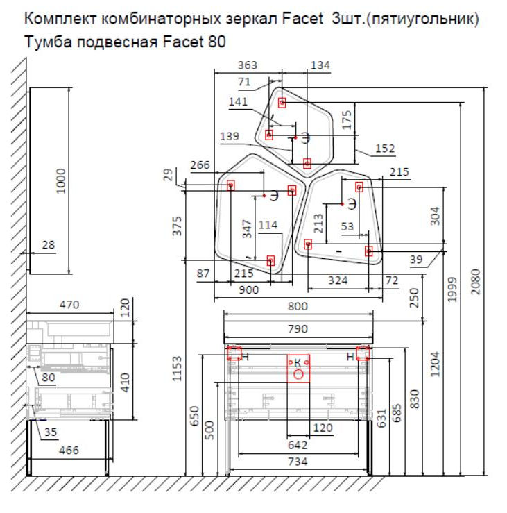 Тумба под раковину Raval Facet 80 подвесная Fac.01.80/P/A/RL антрацит