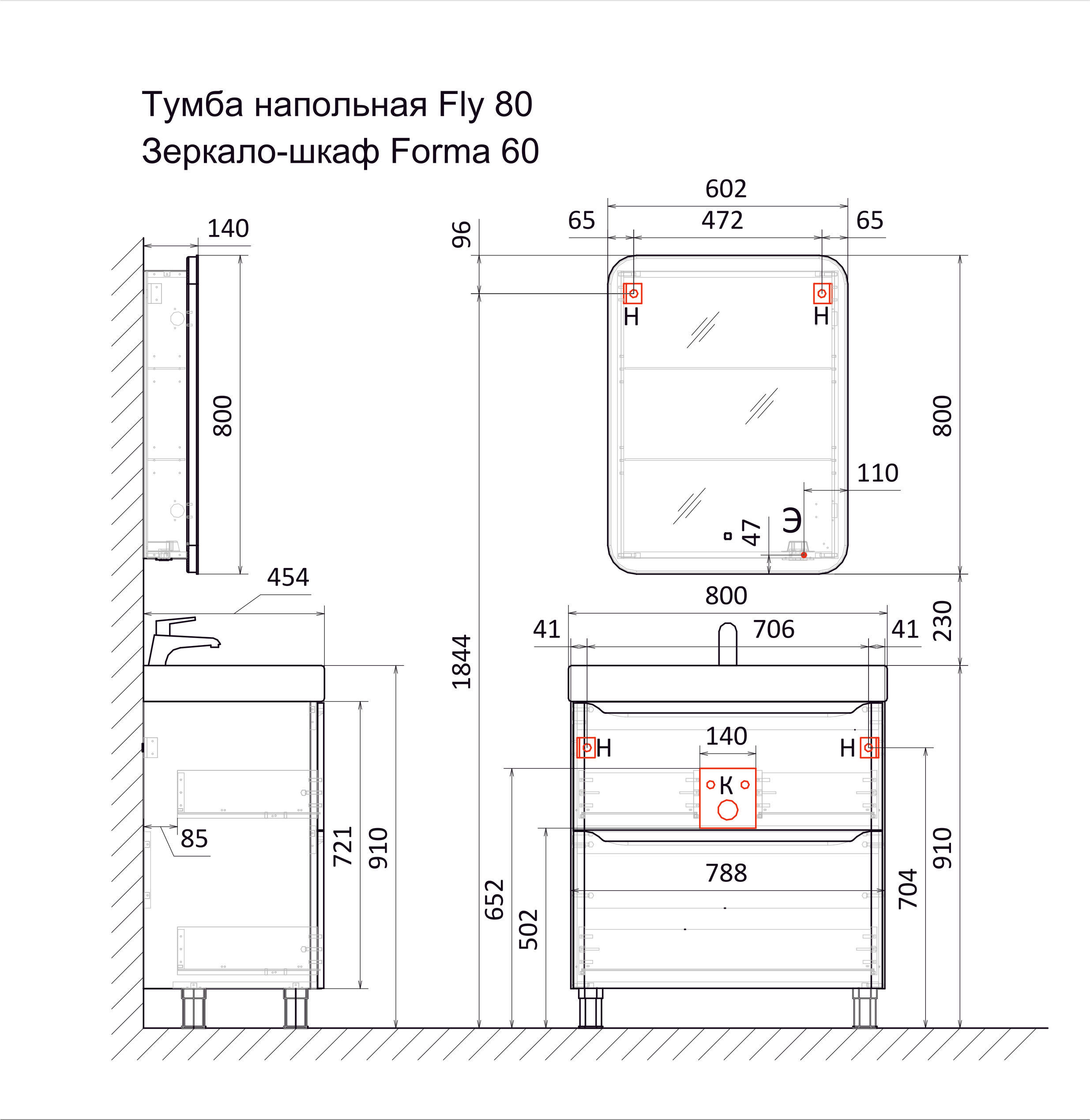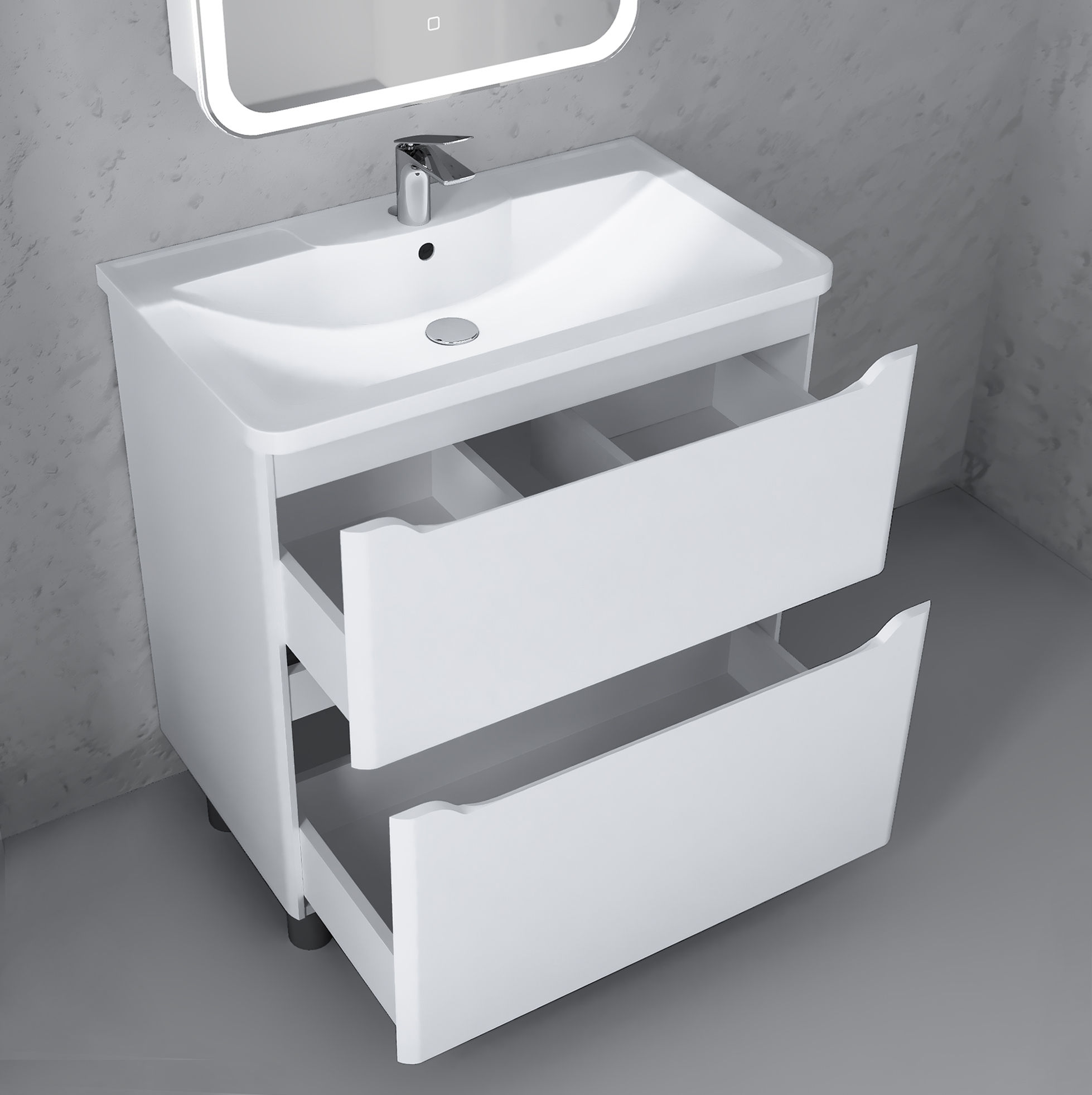Тумба под раковину Raval Fly 80 напольная Fly.01.80/N/W/MD белая
