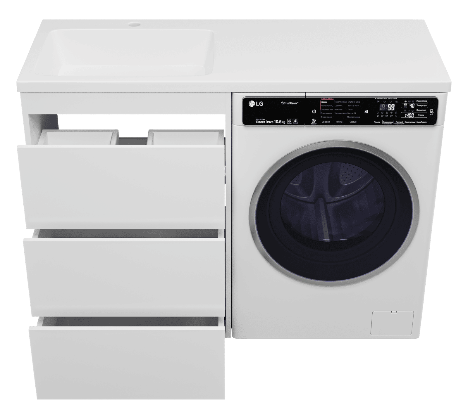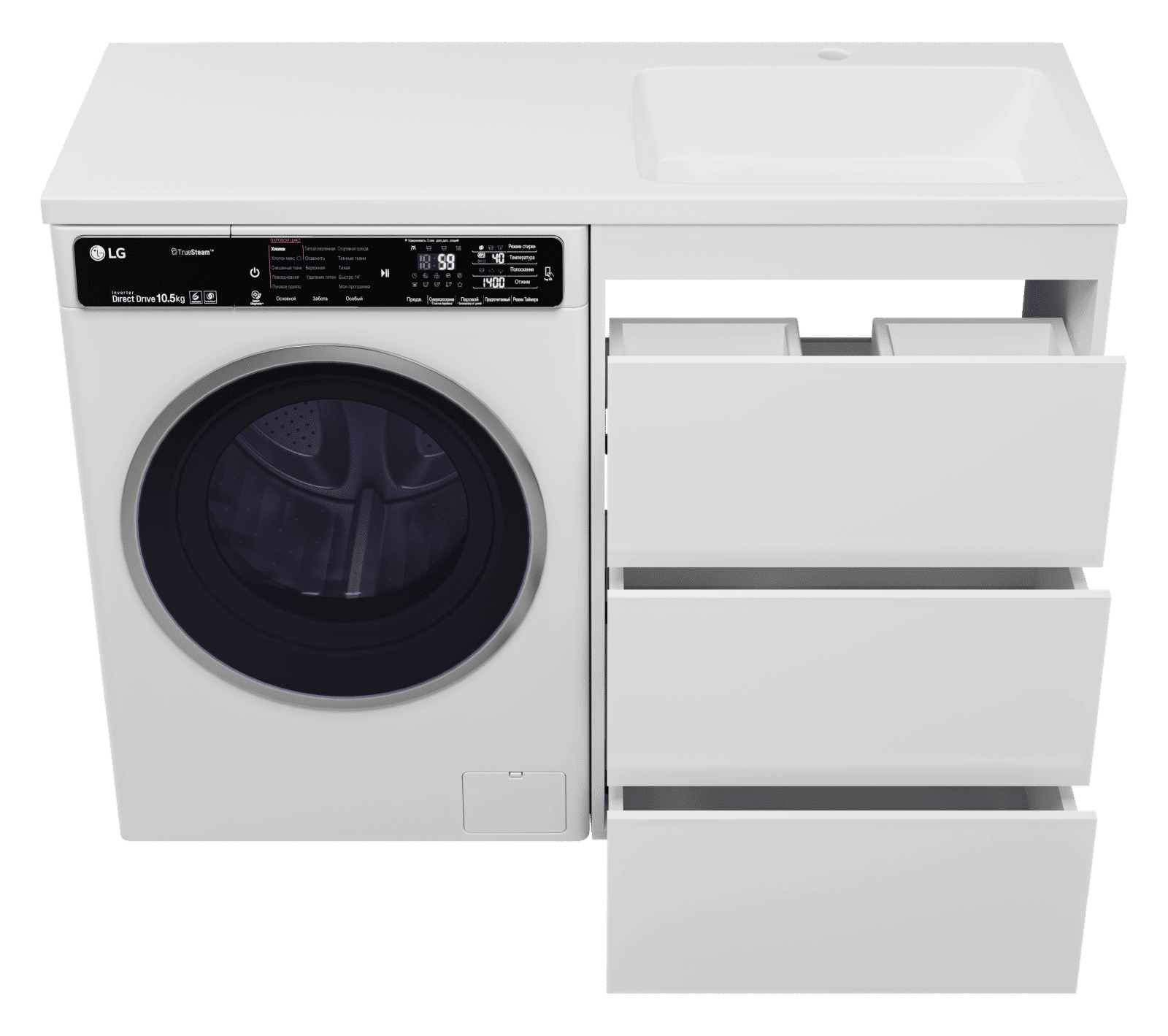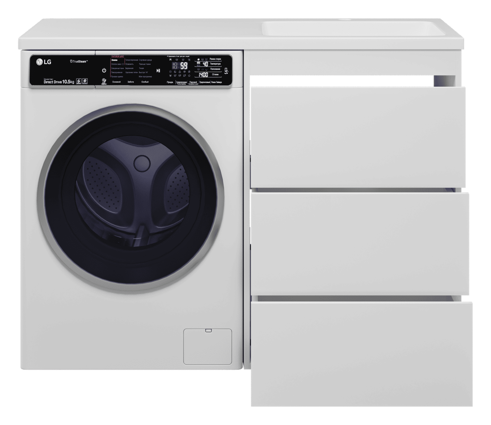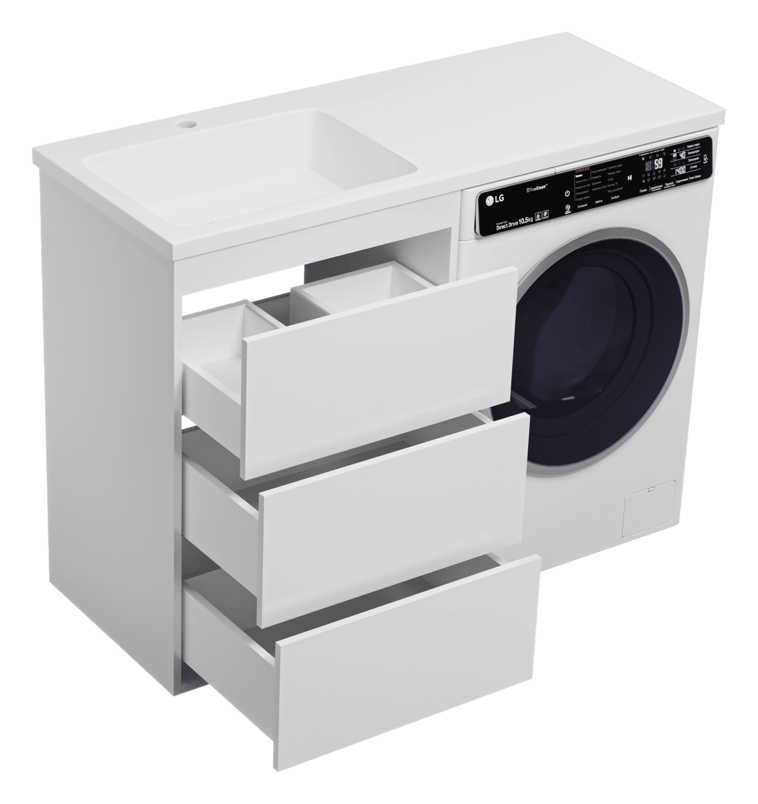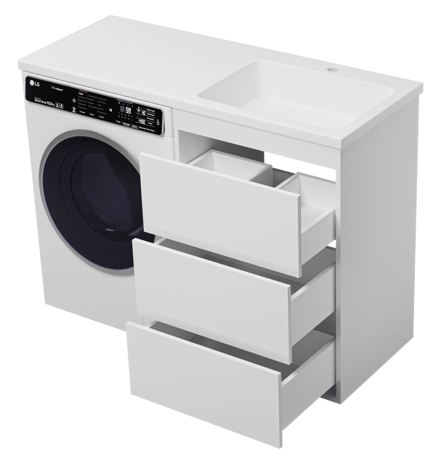 Тумба под раковину Brevita Grafit 60 напольная 3 ящ. под стиральную машину / GRA-01060-023Я белая
