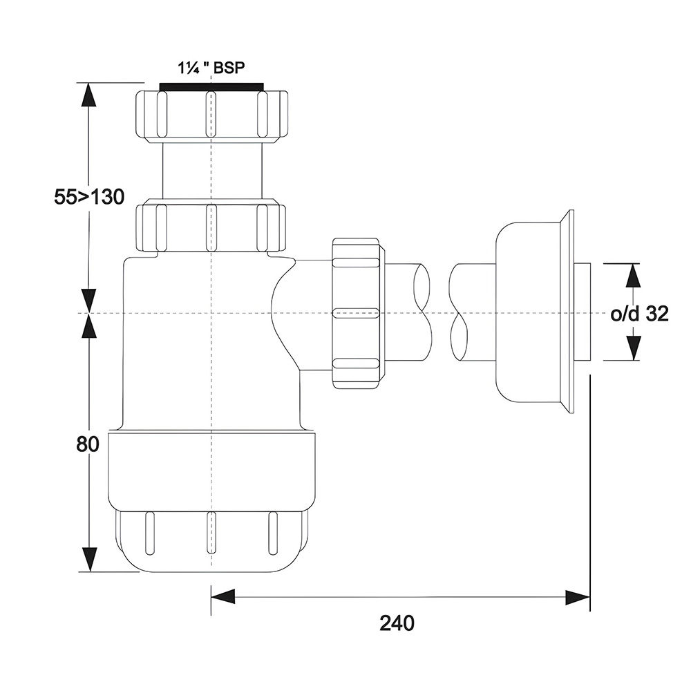 Сифон для раковины McAlpine HC2 (1 1/4''х32мм)
