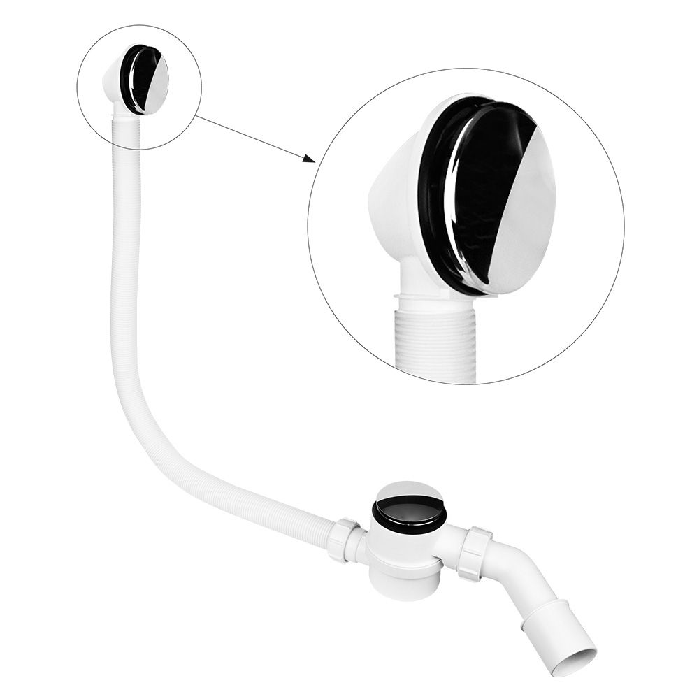 Телескопическая переливная трубка, регулируемая до 1000 мм, обеспечивает универсальную подгонку под ванны и душевые поддоны разной глубины, что делает установку максимально удобной и гибкой. При этом сифон способен пропускать до 50 литров воды в минуту при водяном столбе 120 мм, гарантируя эффективный слив и предотвращая переполнение. А цвет пробки хром придает сифону стильный и современный вид, который прекрасно впишется в интерьер.