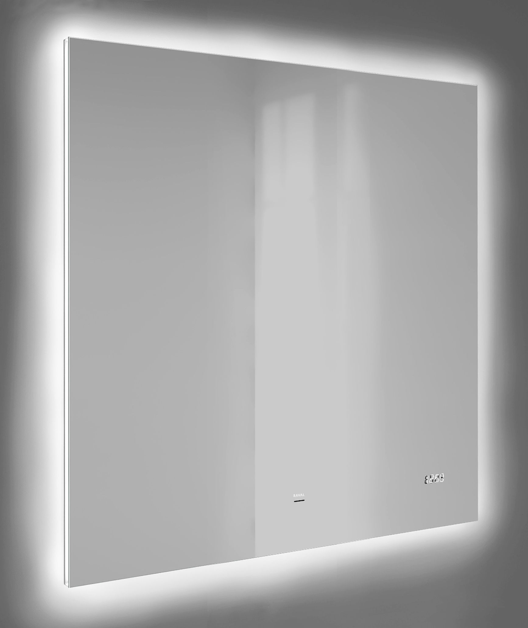 Зеркало Raval Kvadro 80x80 с подсветкой и часами / Kvdr.02.80/W/RL