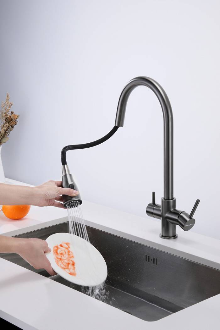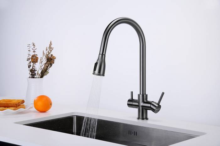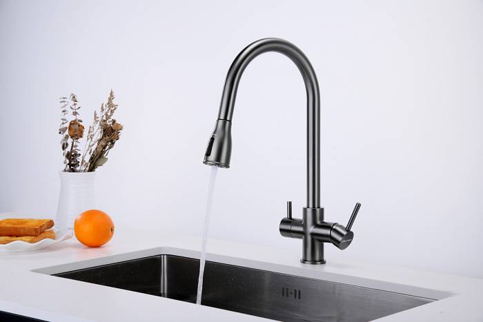 Смеситель для кухни Paulmark Lange La214212-GM вороненая сталь