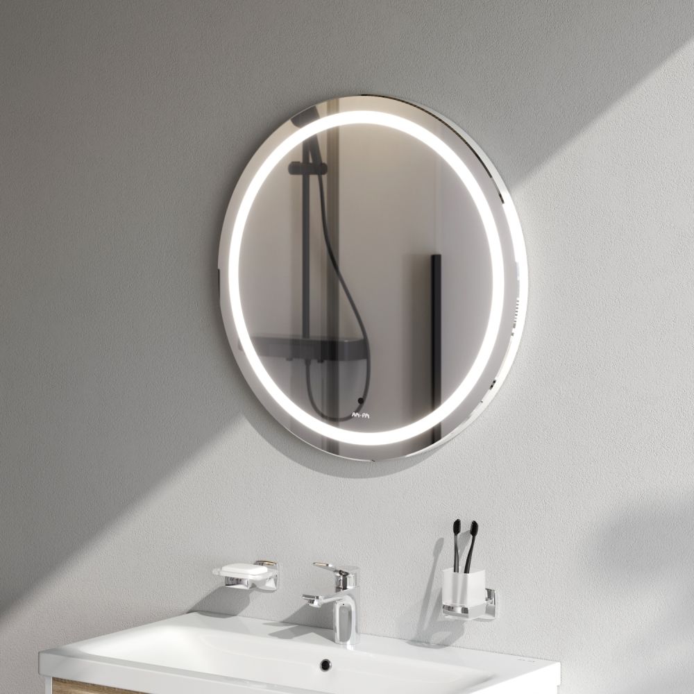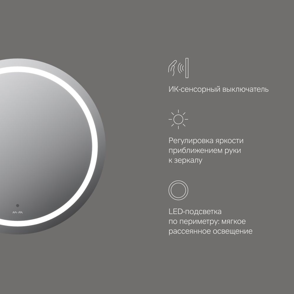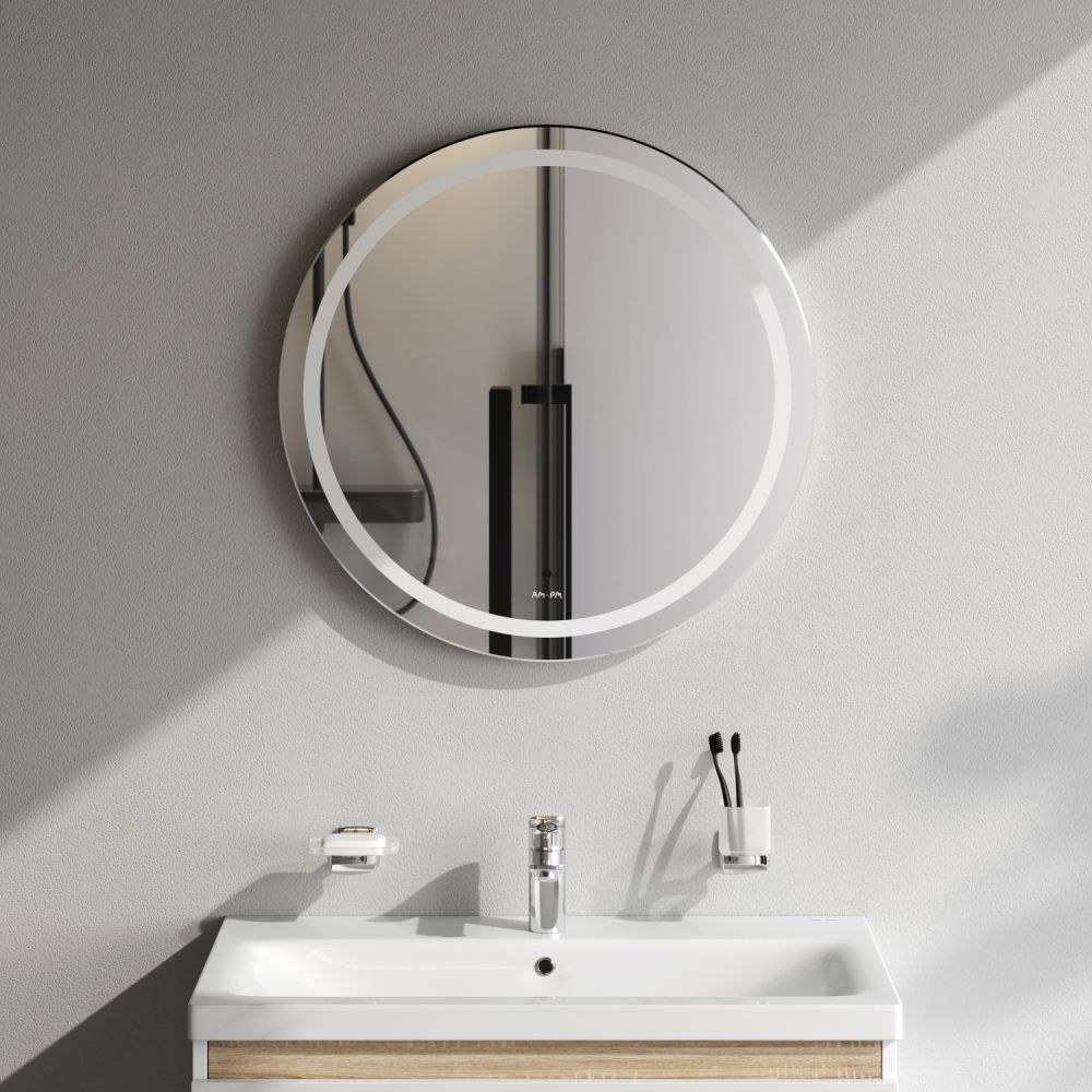 Зеркало с подсветкой в ванную круглое 65 AM.PM X-Joy M85AMOX0651WG сенсорное. Ультрамодный дизайн зеркала бренда AM.PM коллекции X-Joy подойдет к интерьеру любой ванной комнаты. Тип подсветки — LED.