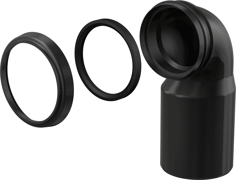 В комплекте: стоковое колено Ø90/110 мм, прокладка, уплотнительное кольцо.