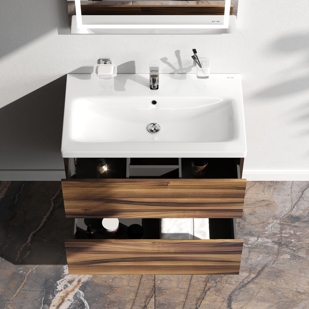 Тумба под раковину AM.PM GEM 75 см подвесная 2 ящика (push-to-open) / M90FHX0752HF орех