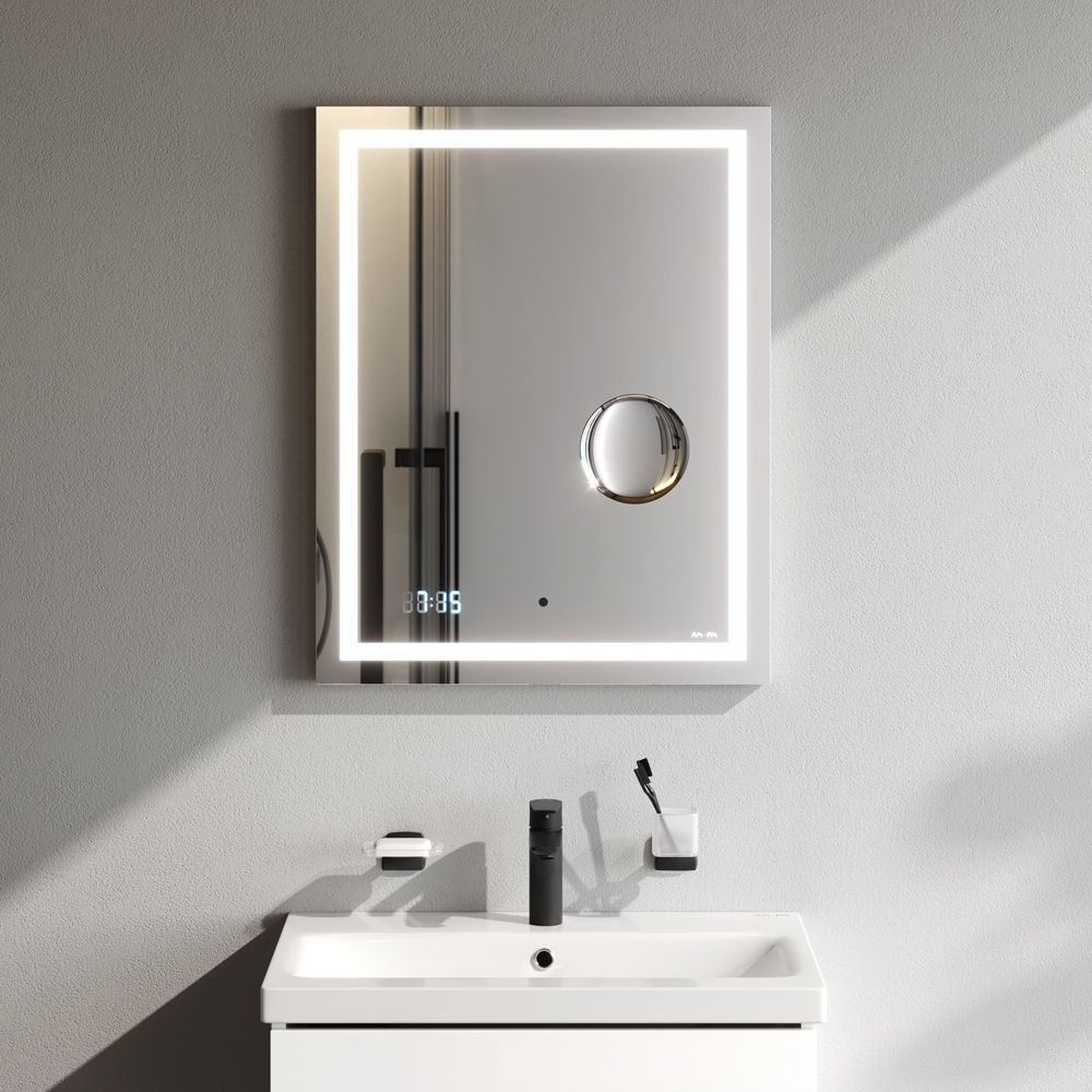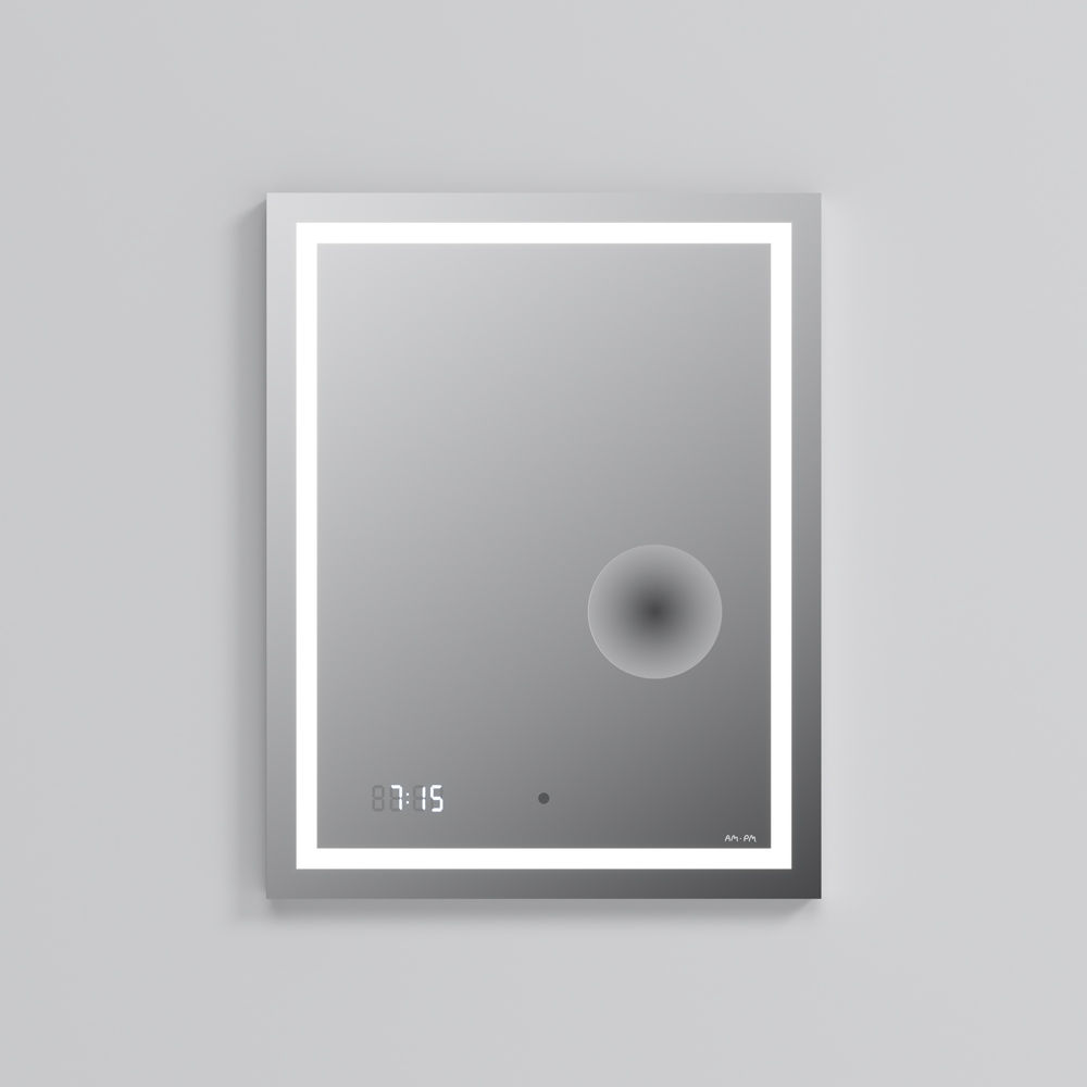 Зеркало AM.PM Gem 55×70 см с контурной Led-подсветкой, часами и косметическим зеркалом / M91AMOX0553WG