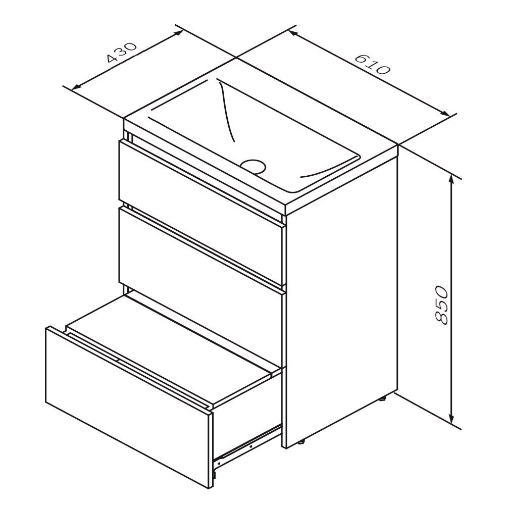 Тумба под раковину AM.PM GEM S 60 см напольная 3 ящика / M91FSX0602GM графит матовый