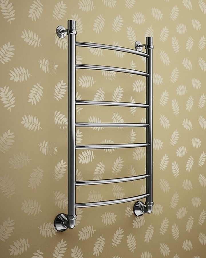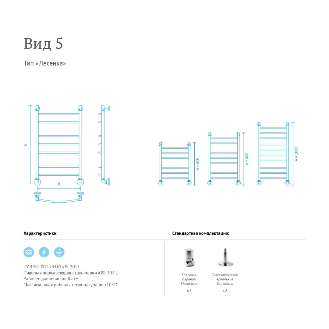 Водяной полотенцесушитель Маргроид Вид 5 изготовлен из из нержавеющей стали. Полотенцесушитель имеет самую распространенную и универсальную форму «лесенка».