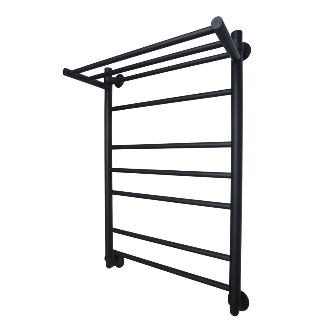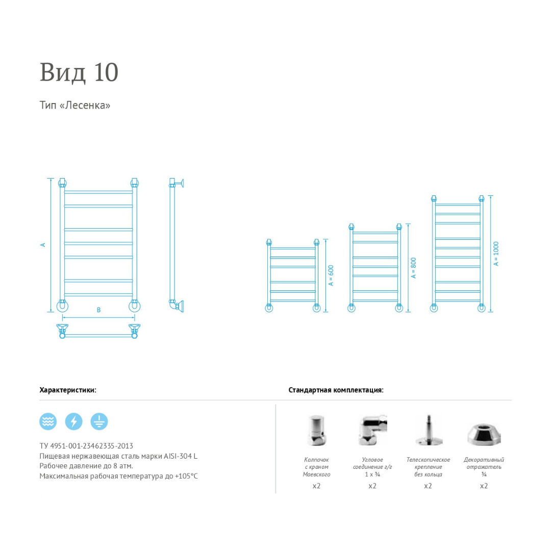Водяной полотенцесушитель Маргроид Вид 10 с полкой изготовлен из из нержавеющей стали. Полотенцесушитель имеет самую распространенную и универсальную форму «лесенка».