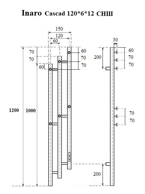 Полотенцесушитель электрический Маргроид Ferrum Inaro 3 Cascade СНШ 120×6×12 Черный матовый, скрытого монтажа, таймер справа
