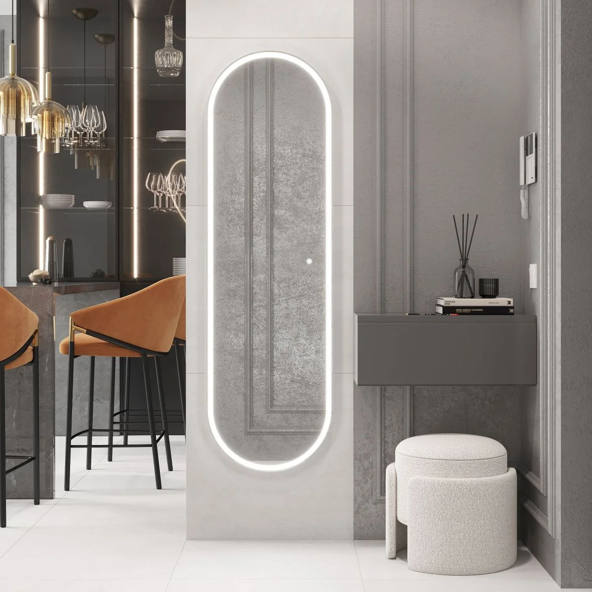 Зеркало Laparet Modus 2 45х150 (овал) влагостойкое с подсветкой, без подогрева