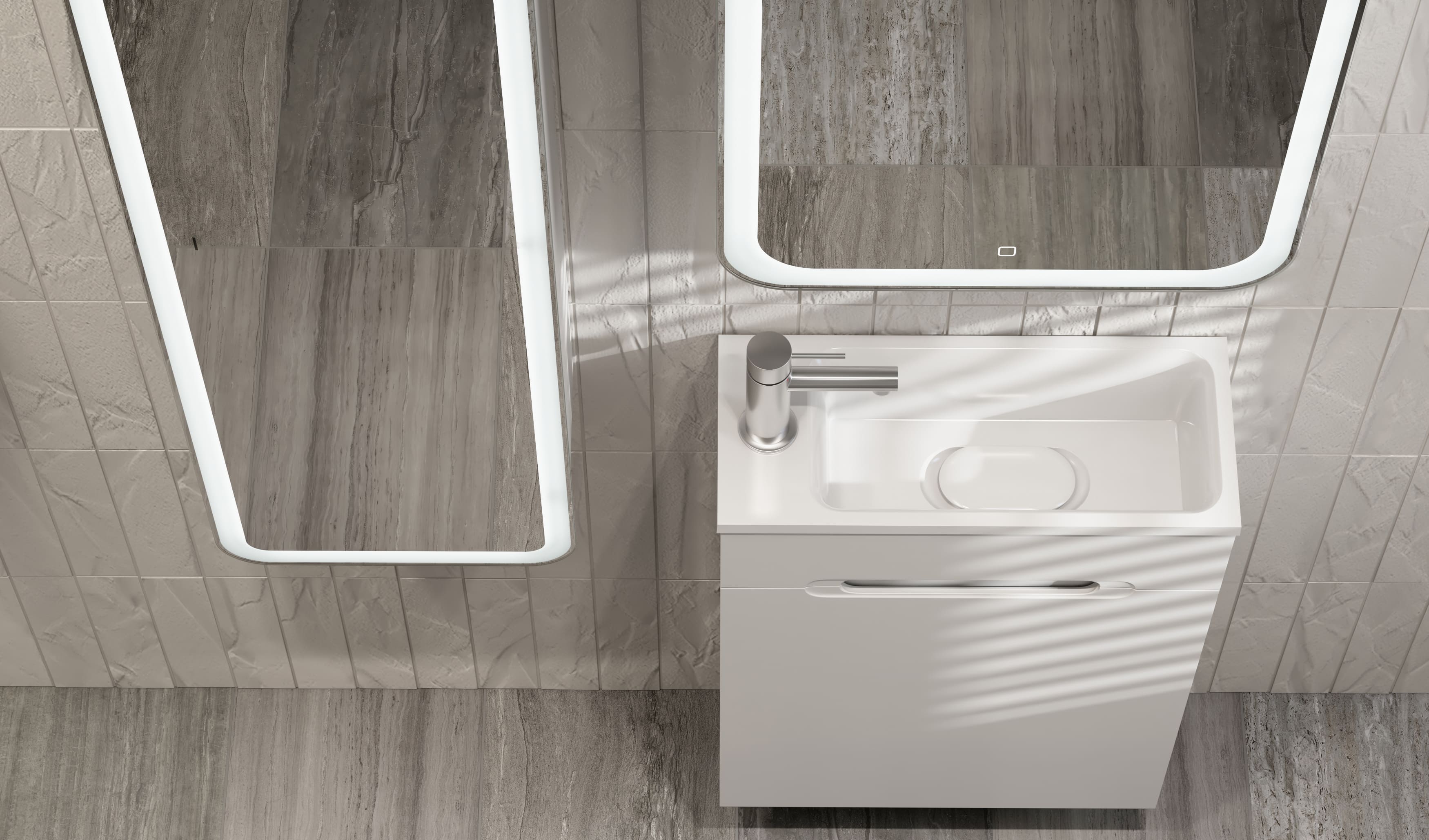 Jorno Modul 50 подвесная оснащена ящиками с системой плавного закрывания, которая гарантирует бесшумное и мягкое движение, предотвращая любые хлопки и обеспечивая комфорт при ежедневном использовании. Интегрированные ручки добавляют изящества дизайну, создавая ощущение цельности и минимализма. Декоративный вкладыш в раковину придает особый шарм, подчеркивая стиль и гармонию всей композиции.
