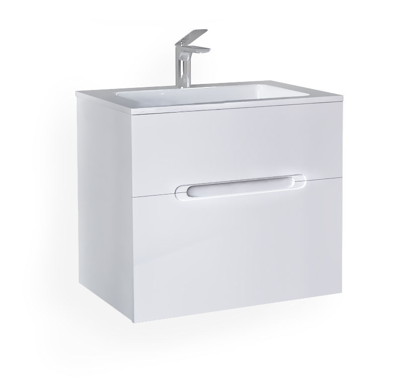 Jorno Modul 65 подвесная оснащена ящиками с системой плавного закрывания, которая гарантирует бесшумное и мягкое движение, предотвращая любые хлопки и обеспечивая комфорт при ежедневном использовании. Интегрированные ручки добавляют изящества дизайну, создавая ощущение цельности и минимализма. Декоративный вкладыш в раковину придает особый шарм, подчеркивая стиль и гармонию всей композиции.